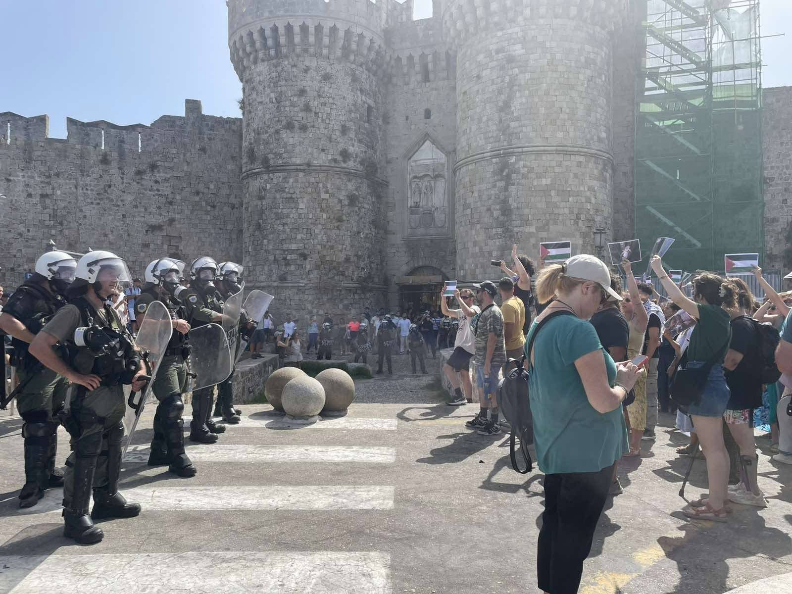 Οπως αναφέρει η ΕΛΑΣ στις 15:15 της 28ης Ιουλίου ομάδα περίπου 40-50 ατόμων συγκεντρώθηκε έξω από την κύρια πύλη του τουριστικού λιμανιού, με σκοπό να παρεμποδίσει την αποβίβαση επιβατών του κρουαζιερόπλοιου. Παρά τις εκκλήσεις των αστυνομικών δυνάμεων να αποχωρήσουν, οι διαδηλωτές παρέμειναν στον χώρο, φωνάζοντας συνθήματα όπως «φονιάδες Ισραηλινοί» και «δολοφόνοι».