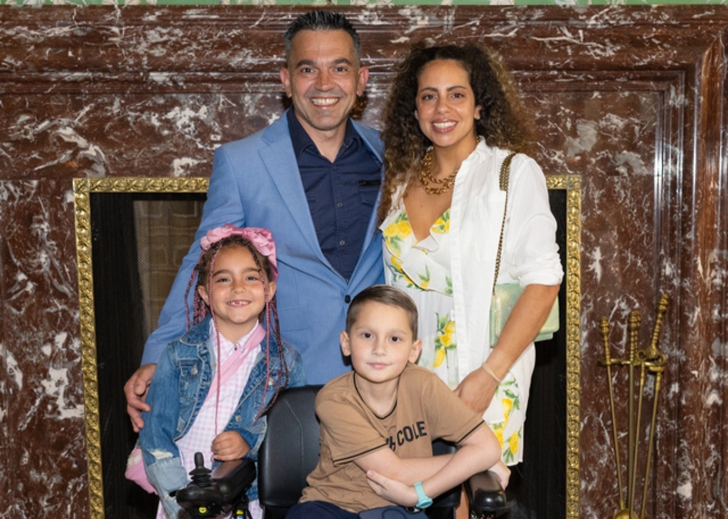 "Η ζωή του, του τα έφερε έτσι ώστε να παλεύει μόνιμα για κάτι και να θεωρεί ότι είναι και φυσιολογικό αυτό. Ότι αυτή είναι η ζωή του. Δεν μου έχει παραπονεθεί ποτέ, δεν μου έχει πει ποτέ ότι θα ήθελα να είμαι σαν τα άλλα παιδιά ή να περπατάω σαν τα άλλα παιδιά. Λόγω του καρκίνου έχει χάσει το ένα του πόδι και καταλαβαίνετε ότι λόγω αυτού αντιμετωπίζει και αναπηρία και να βρίσκεται σε αμαξίδιο. Στην Αμερική κάναμε προσπάθειες με φυσικοθεραπείες και σηκώθηκε με τη βοήθεια ενός βοηθήματος. Γυρίσαμε όμως στην Ελλάδα και βρισκόμαστε ακόμη σε μία μεταβατική περίοδο. Κάνει ακόμη χημειοθεραπείες και θα ακολουθήσουν και πάλι οι φυσικοθεραπείες ενδυνάμωσης".