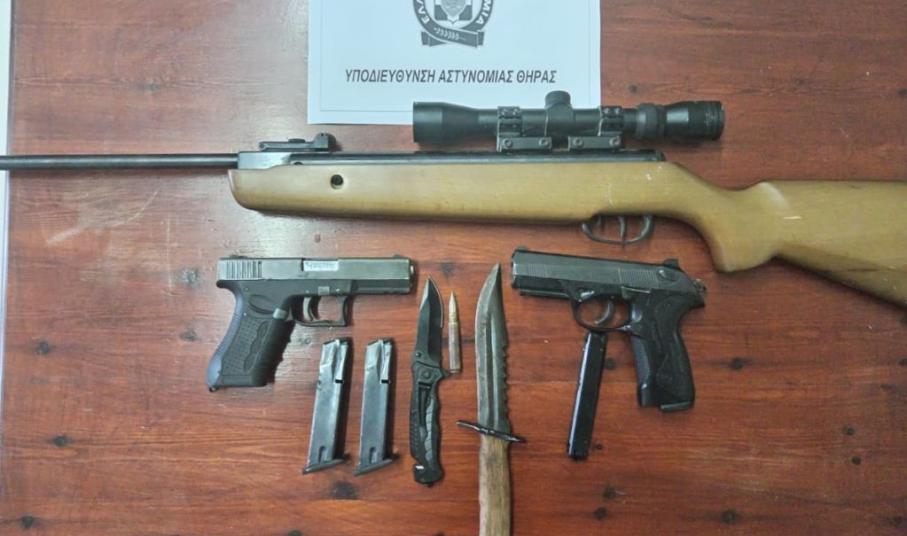 Συνελήφθη σήμερα από αστυνομικούς της Υποδιεύθυνσης Αστυνομίας Θήρας, ένας 41χρόνος αλλοδαπός σε βάρος του οποίου σχηματίσθηκε δικογραφία για παράνομη οπλοκατοχή, παραβίαση του δασικού κώδικα και της νομοθεσίας για τη διατήρηση της βιοποικιλότητας.