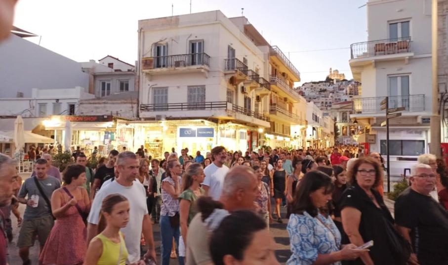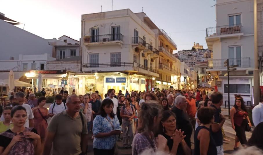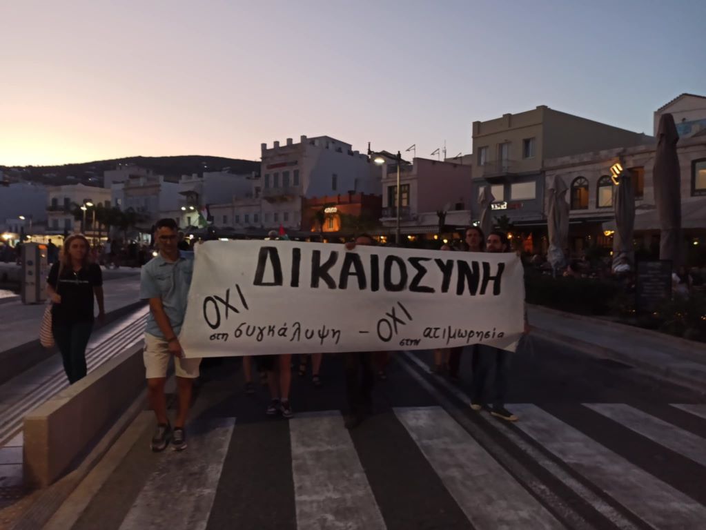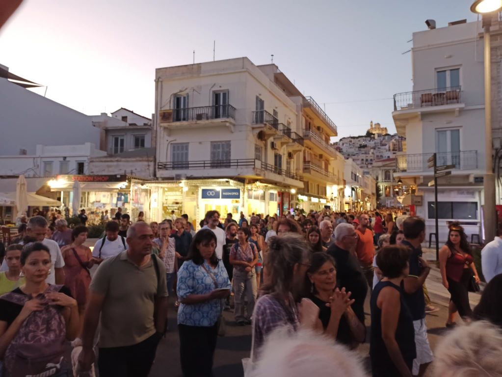 Συγκεκριμένα, η συγκέντρωση πραγματοποιήθηκε στην πλατεία Μιαούλη και στη συνέχεια κάτοικοι, αλλά και επισκέπτες της Σύρου συμμετείχαν στην πορεία που πραγματοποιήθηκε στο κέντρο της Ερμούπολης με μοναδικό αίτημα τη δικαιοσύνη, ενώ από την πορεία δεν έλειψαν και τα μηνύματα για την Παλαιστίνη.