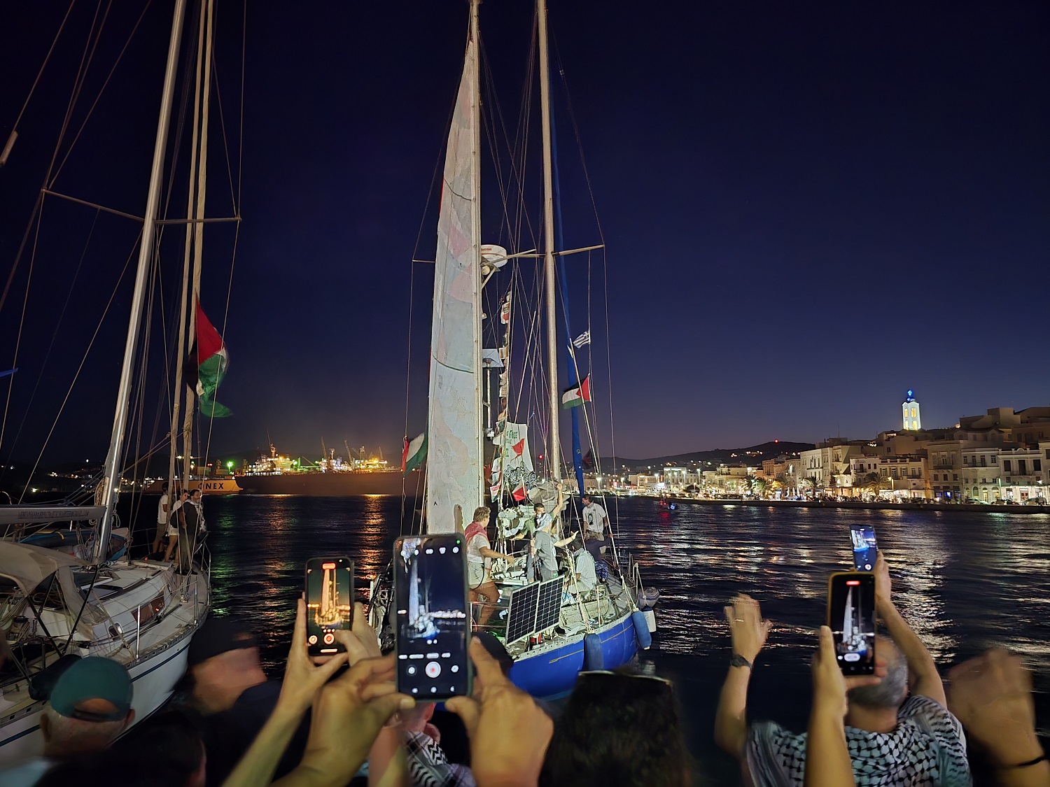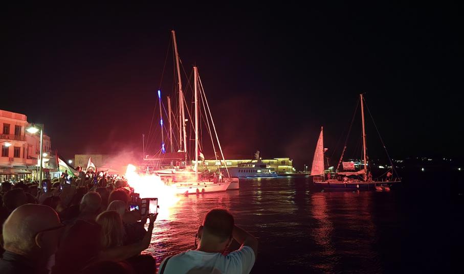 Το Global Sumud Flotilla είχε καλέσει τους ψαράδες, τους ιστιοπλόους και όλους τους ανθρώπους της θάλασσας να βρεθούν με κάθε πλεούμενο στη Σύρο, για να συνοδεύσουν το ελληνικό καράβι στα πρώτα του μίλια και να το προστατέψουν συλλογικά από κάθε εμπόδιο και να το αποχαιρετήσουν όπως του αξίζει, με κύματα αλληλεγγύης.