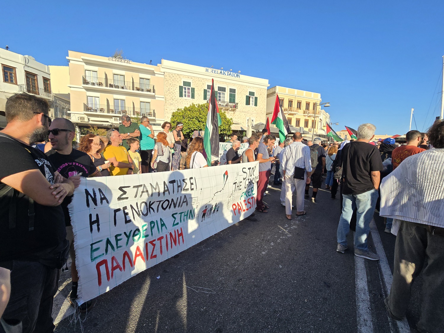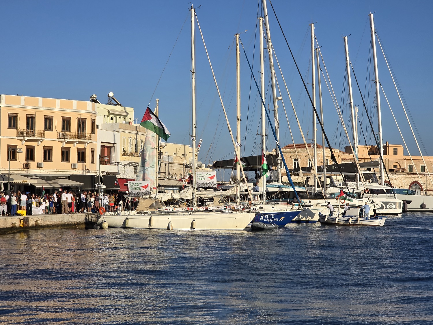 Πλήθος κόσμου, είχε μαζευτεί από νωρίς στο σημείο του λιμανιού που ήταν αγκυροβολημένο το σκάφος "Οξυγόνο", από όπου και απέπλευσε για να ενωθεί με τον διεθνή στόλο που κατευθύνεται στη Γάζα, με σκοπό να αμφισβητήσει τον παράνομο αποκλεισμό και να σταθεί στο πλευρό ενός λαού που βιώνει και αντιστέκεται στη γενοκτονία.
