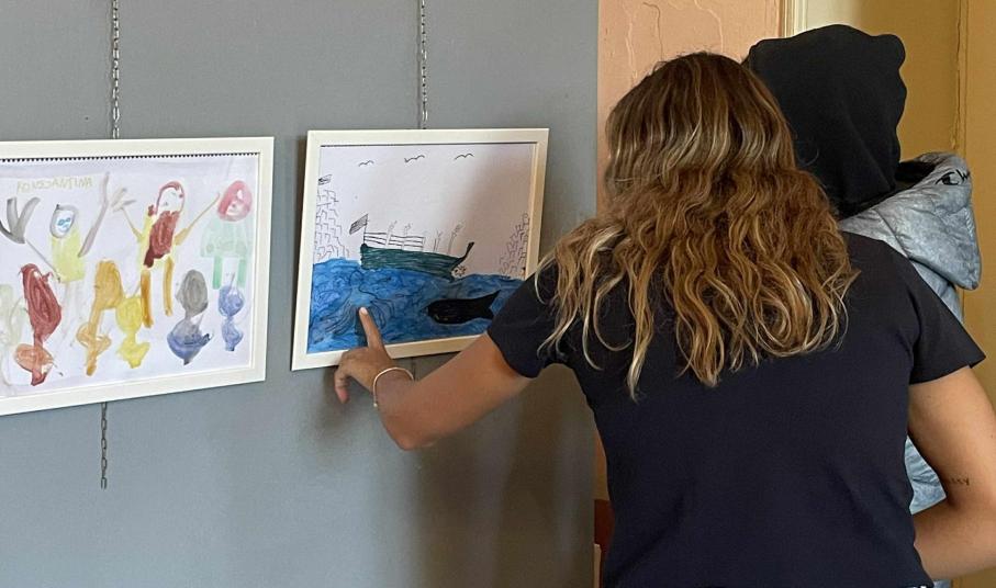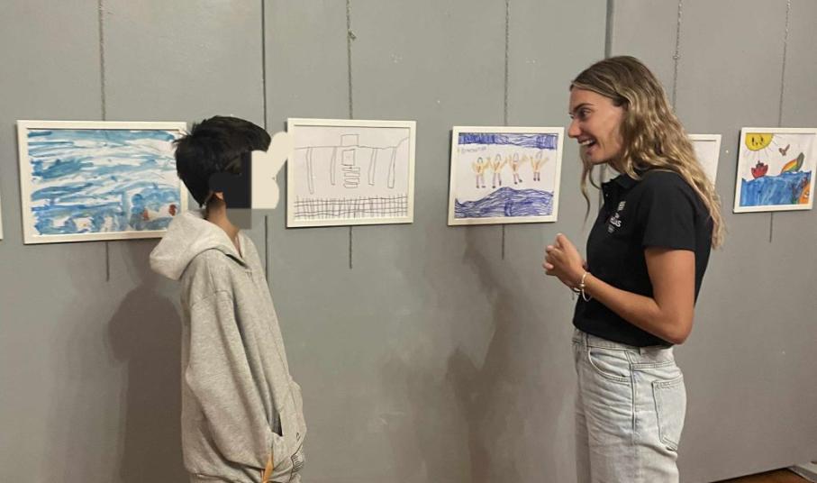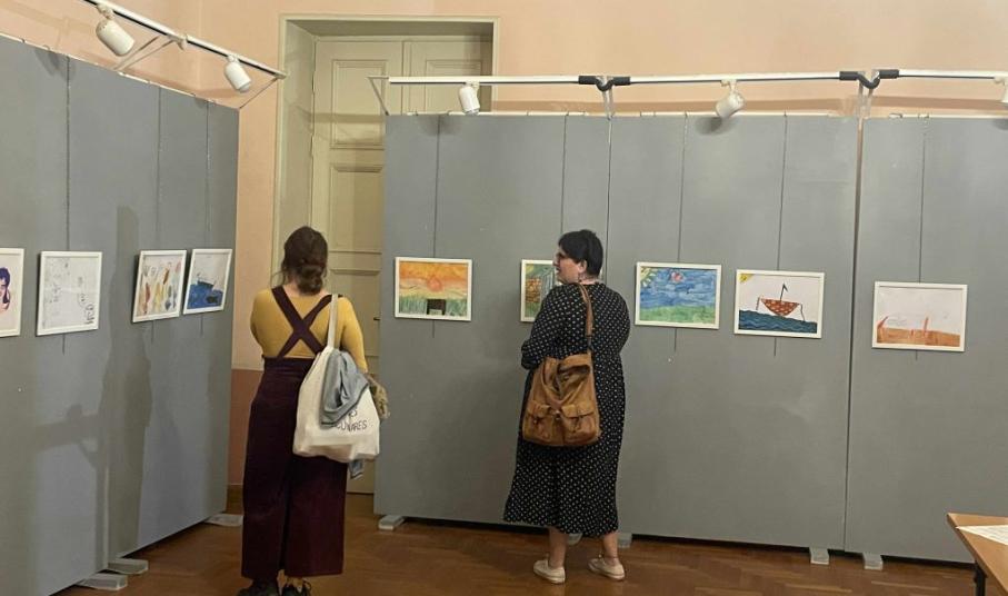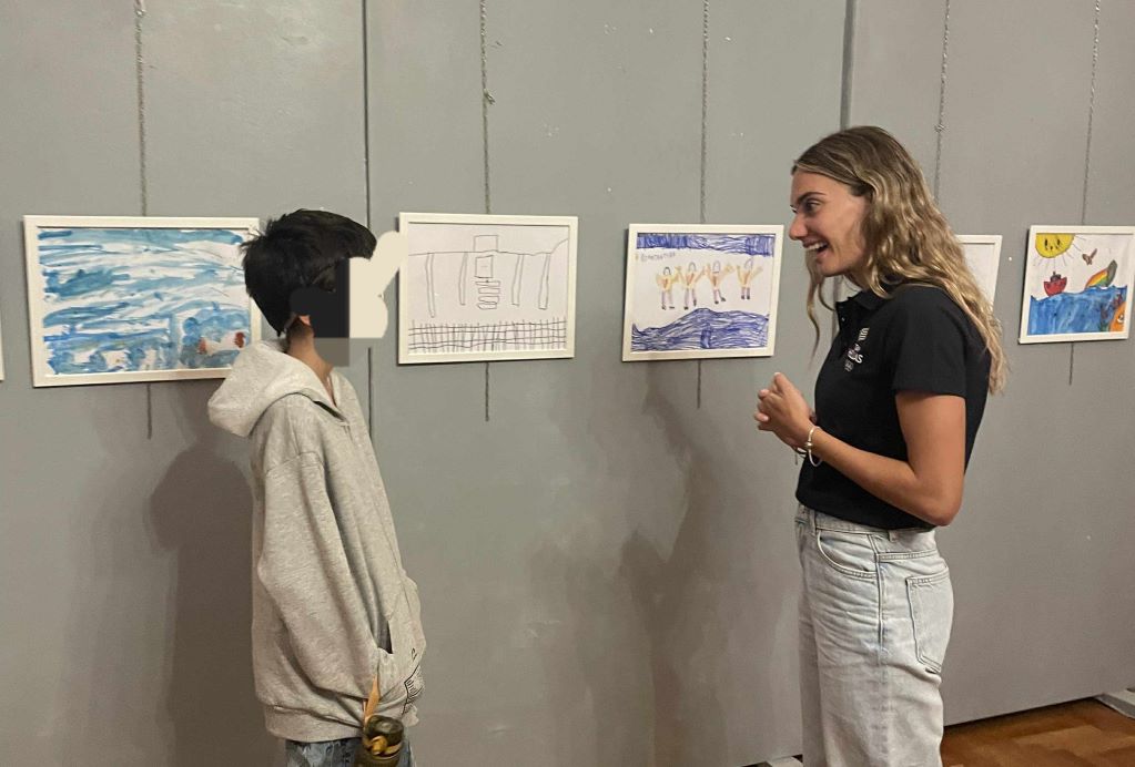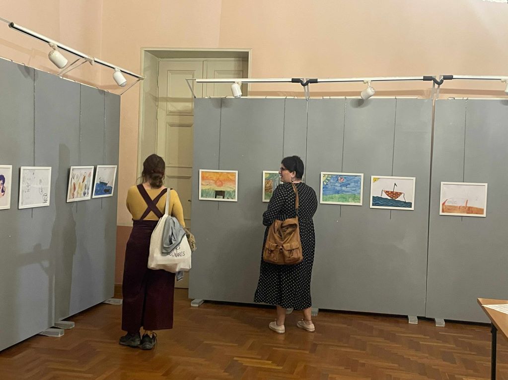 Παράλληλα με τις ομιλίες, στον ίδιο χώρο έλαβε χώρα μία συλλογική έκθεση εικαστικών έργων, με δημιουργίες παιδιών και εφήβων της Σύρου, που συμμετείχαν ενεργά στο καλοκαιρινό πρόγραμμα που υλοποίησε η Στέγη Ανηλίκων, σε συνεργασία με τον Ελβετό παιδαγωγό Dimitri Fresey.