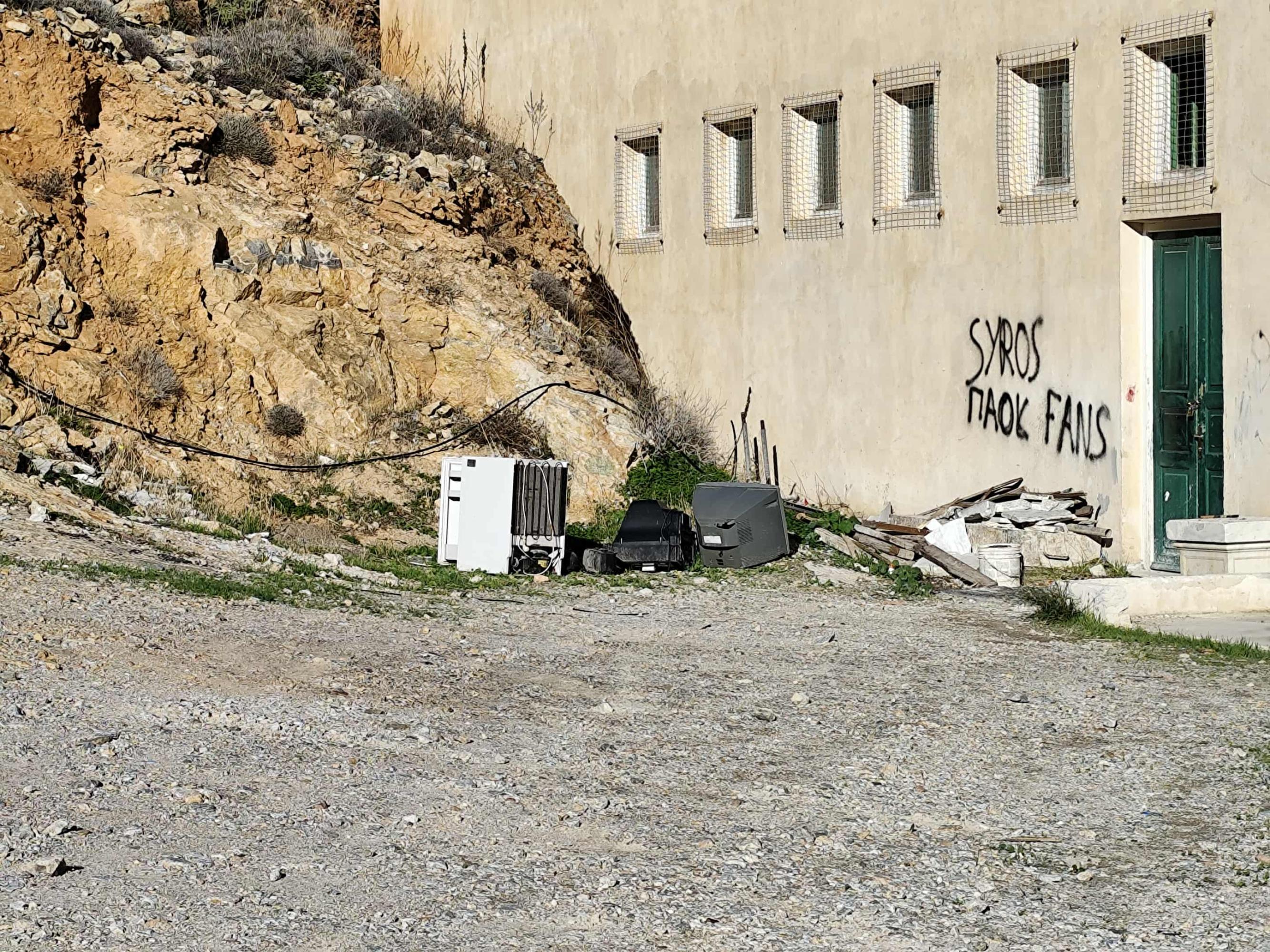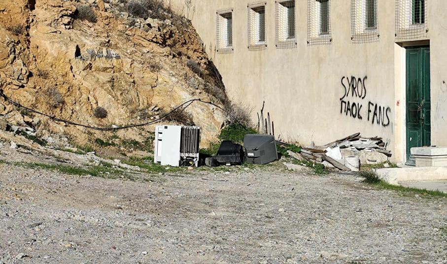 Μικρός σκουπιδότοπος στην είσοδο του γηπέδου Άνω Σύρου
