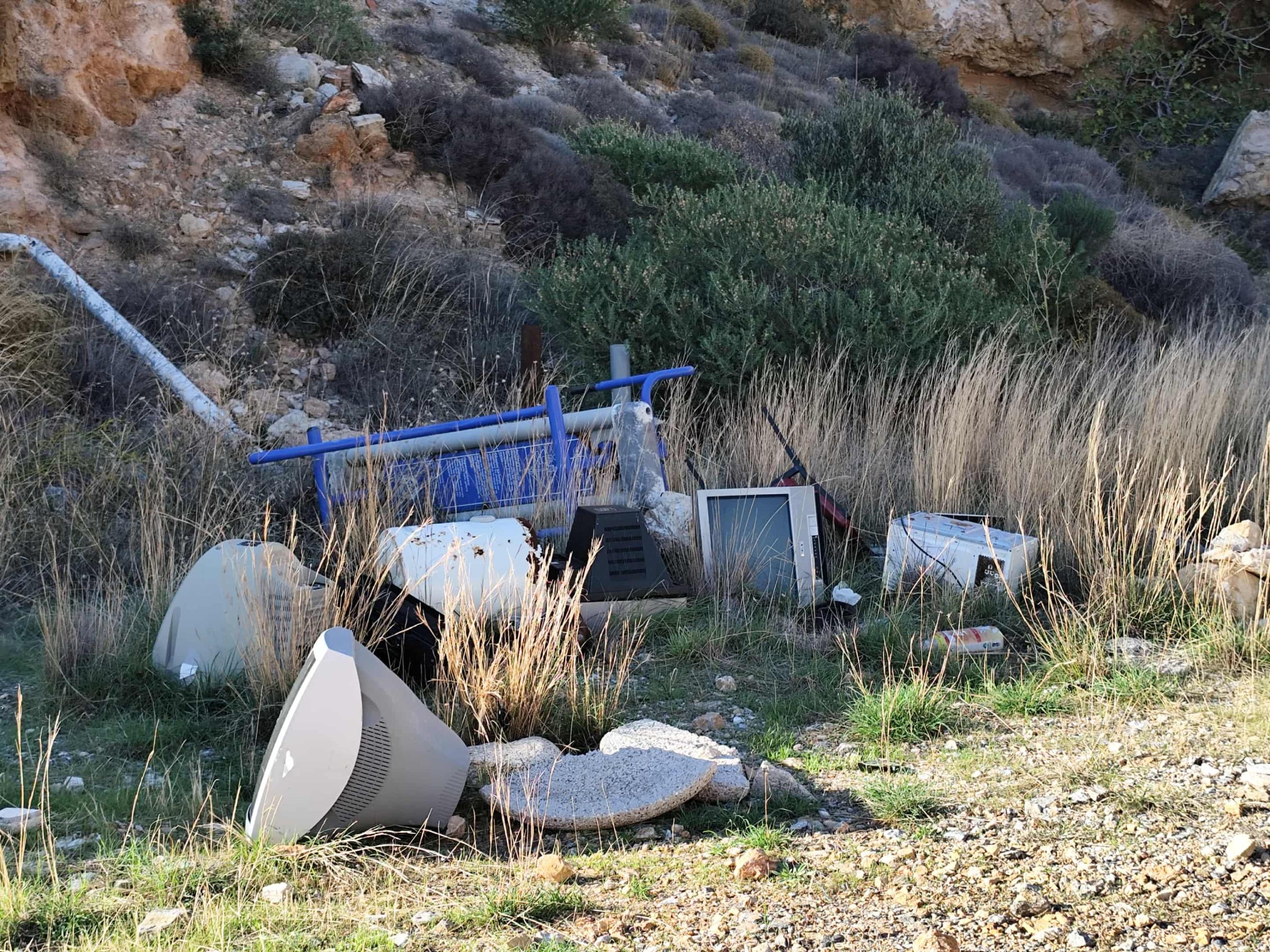 Επιπλέον, έχουν μεταφερθεί απορρίμματα αλλά και ένα μικρό στρώμα, παλιό καζάνι θερμοσίφωνα και καρέκλες.