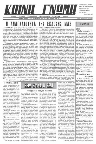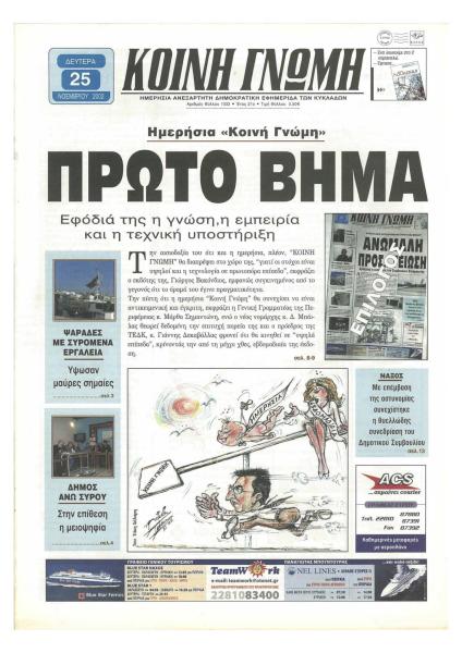 Ήταν Τετάρτη 17 Νοεμβρίου του 1982, όταν η “Κοινή Γνώμη” έκανε τα πρώτα της δειλά βήματα, στον χώρο της ενημέρωσης της Σύρου, αλλά και των Κυκλάδων.