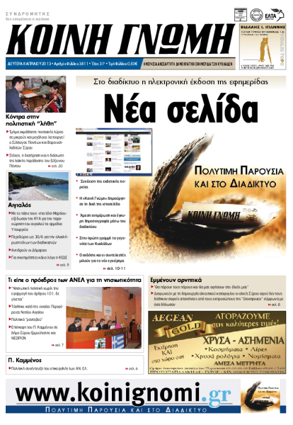 Στο πλαίσιο αυτό, μάλιστα, το 2013 η εφημερίδα μπήκε δυναμικά στον χώρο του διαδικτύου, με την ηλεκτρονική της έκδοση, η οποία συνεχώς μέχρι και σήμερα εμπλουτίζεται σε περιεχόμενο και θεματικές ενότητες, ανταποκρινόμενη στις ανάγκες της σύγχρονης εποχής.