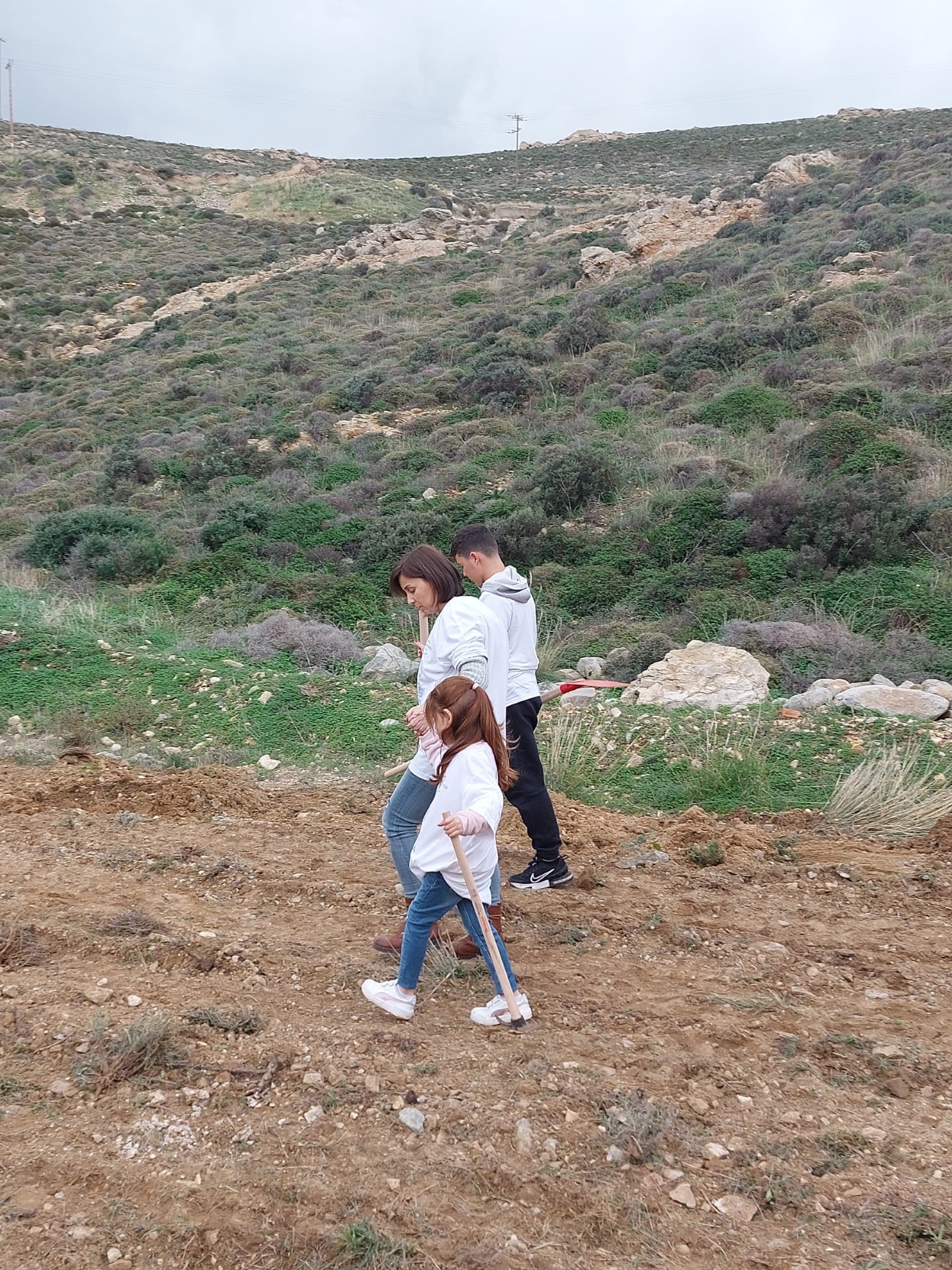 Μικροί και μεγάλοι κάτοικοι του νησιού, πήραν τις τσάπες, τις τσουγκράνες και τα φτυάρια τους, φόρεσαν τα αναμνηστικά μπλουζάκια και μαζί με ταμπελάκια με το όνομά τους, φύτεψαν τα δέντρα. Μάλιστα, με την ολοκλήρωση της δενδροφύτευσης, ο ουρανός «άνοιξε» και πότισε τις νέες φυτεύσεις, γεμίζοντας με χαρά και αισιοδοξία τους συμμετέχοντες.