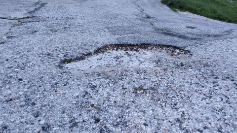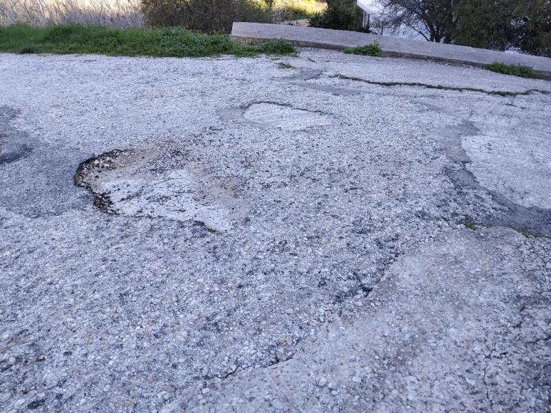 Εκτός όμως από τις λακκούβες, την ίδια εικόνα, ή ίσως ακόμη και χειρότερη, παρουσιάζει συνολικότερα το οδόστρωμα, καθώς η πρόχειρη τσιμεντόστρωση που είχε πέσει, έχει φθαρεί σε μεγάλο βαθμό, δημιουργώντας προβλήματα ολισθηρότητας των οχημάτων.