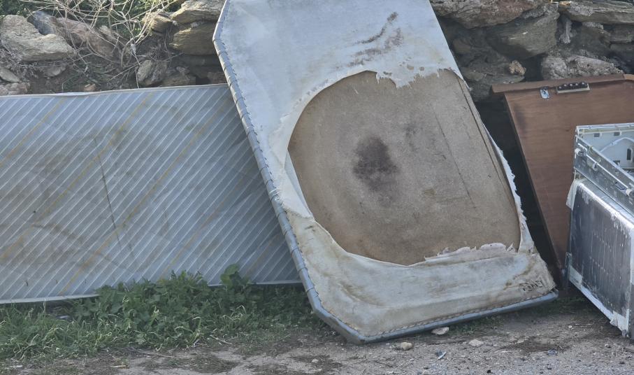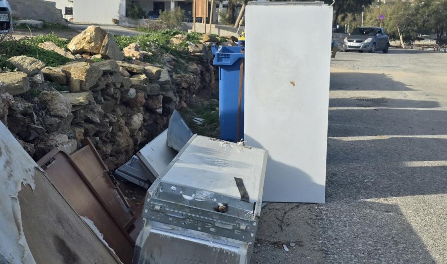 Δυσάρεστες εικόνες καταγράφηκαν τις τελευταίες ημέρες στην Αζόλιμνο, καθώς δίπλα σε κάδους απορριμμάτων και ανακύκλωσης βρέθηκαν παρατημένα ογκώδη αντικείμενα, όπως δύο ψυγεία, στρώματα και έπιπλα. Πρόκειται για αντικείμενα που σε καμία περίπτωση δεν επιτρέπεται να απορρίπτονται ανεξέλεγκτα σε σημεία συλλογής οικιακών απορριμμάτων.