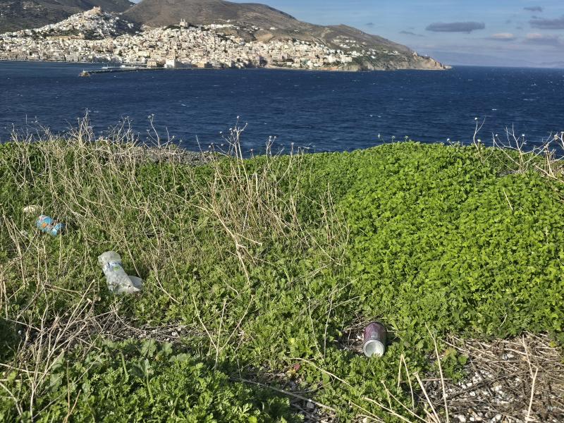 Πλαστικά μπουκάλια, συσκευασίες και διάφορα απορρίμματα εντοπίζονται πεταμένα στο έδαφος και ανάμεσα στη χαμηλή βλάστηση, αλλοιώνοντας την αισθητική ενός χώρου που θα έπρεπε να παραμένει καθαρός και φροντισμένος. Η εικόνα αυτή δεν προκύπτει από έλλειψη υποδομών, αλλά από την επιλογή κάποιων να αφήνουν όπου βρουν τα σκουπίδια τους, αντί να τα μεταφέρουν και να τα απορρίπτουν σωστά.