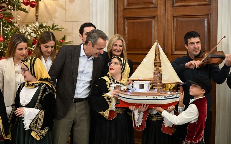 Τα κάλαντα των Χριστουγέννων στον πρωθυπουργό Κυριάκο Μητσοτάκη και την οικογένειά του, στο Μέγαρο Μαξίμου είπαν μαθητές από το Μουσικό Σχολείο Αλίμου και τον Πολιτιστικό Σύλλογο Ερέτριας «Κωνσταντίνος Κανάρης».