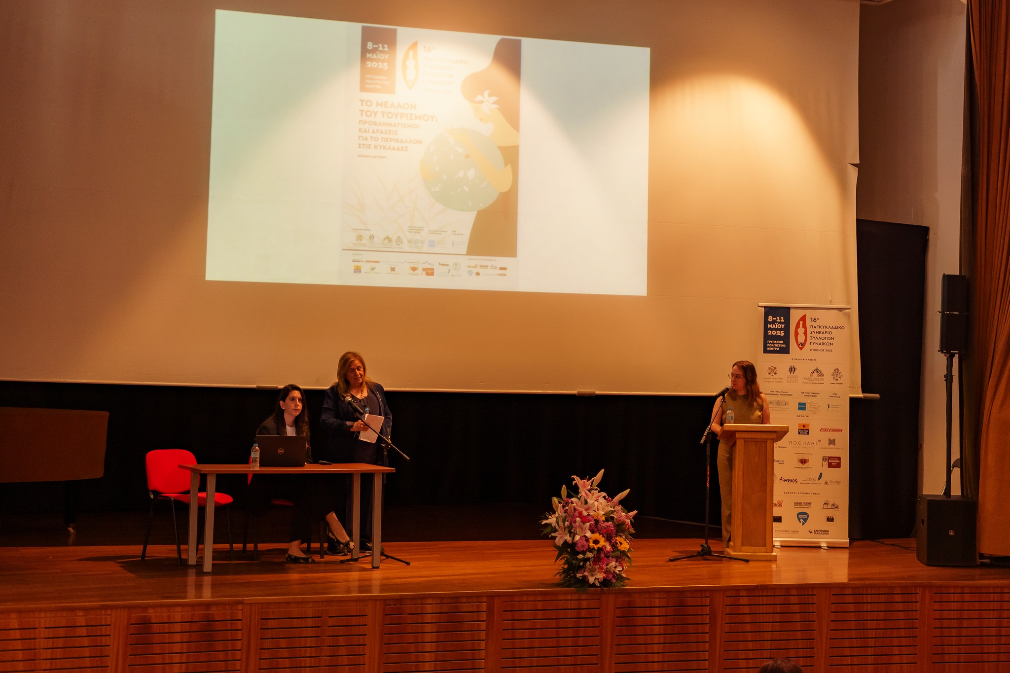 “Είναι η πρώτη φορά που η Ομοσπονδία ταξιδεύει στη Σύρο, διοργανώνοντας το ετήσιό της Παγκυκλαδικό Συνέδριο. Θα πρέπει να σημειώσω ότι το Συνέδριό μας στηρίζει, όπως κάθε χρόνο, η Περιφέρεια Νοτίου Αιγαίου, οι Δήμοι των Κυκλάδων και αυτό είναι πολύ σημαντικό, όπως και τη Γενική Γραμματεία Νησιωτικής Πολιτικής. Φέτος, παρ’ όλο που είμαστε εν αναμονή της επίσημης αποδοχής, μπορώ να πω ότι θα έχουμε και τη στήριξη του Υπουργείου Κοινωνικής Συνοχής και Οικογένειας. Τέλος να επισημάνω ότι οι φετινές μας εργασίες, στηρίζονται από τον φιλοξενούντα Σύλλογο και συγκεκριμένα, το Σύλλογο Γυναικών Σύρου”, δήλωσε η κα. Μαυρουδή.