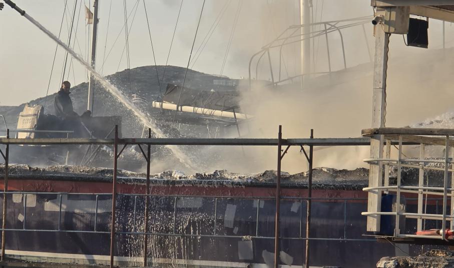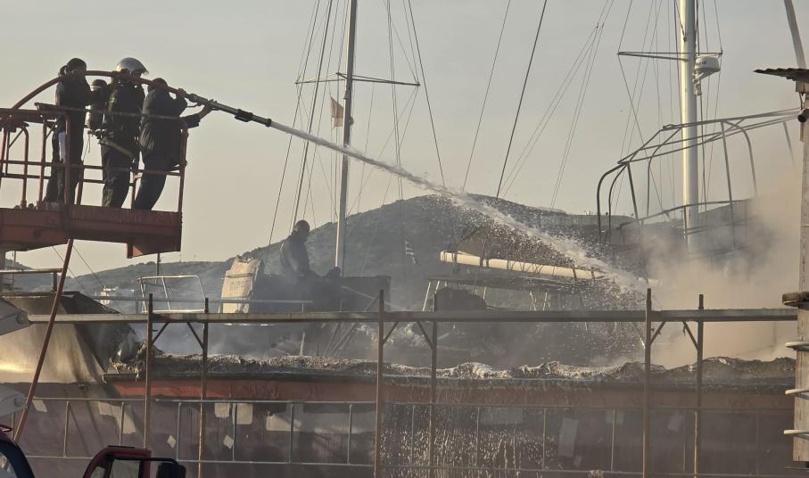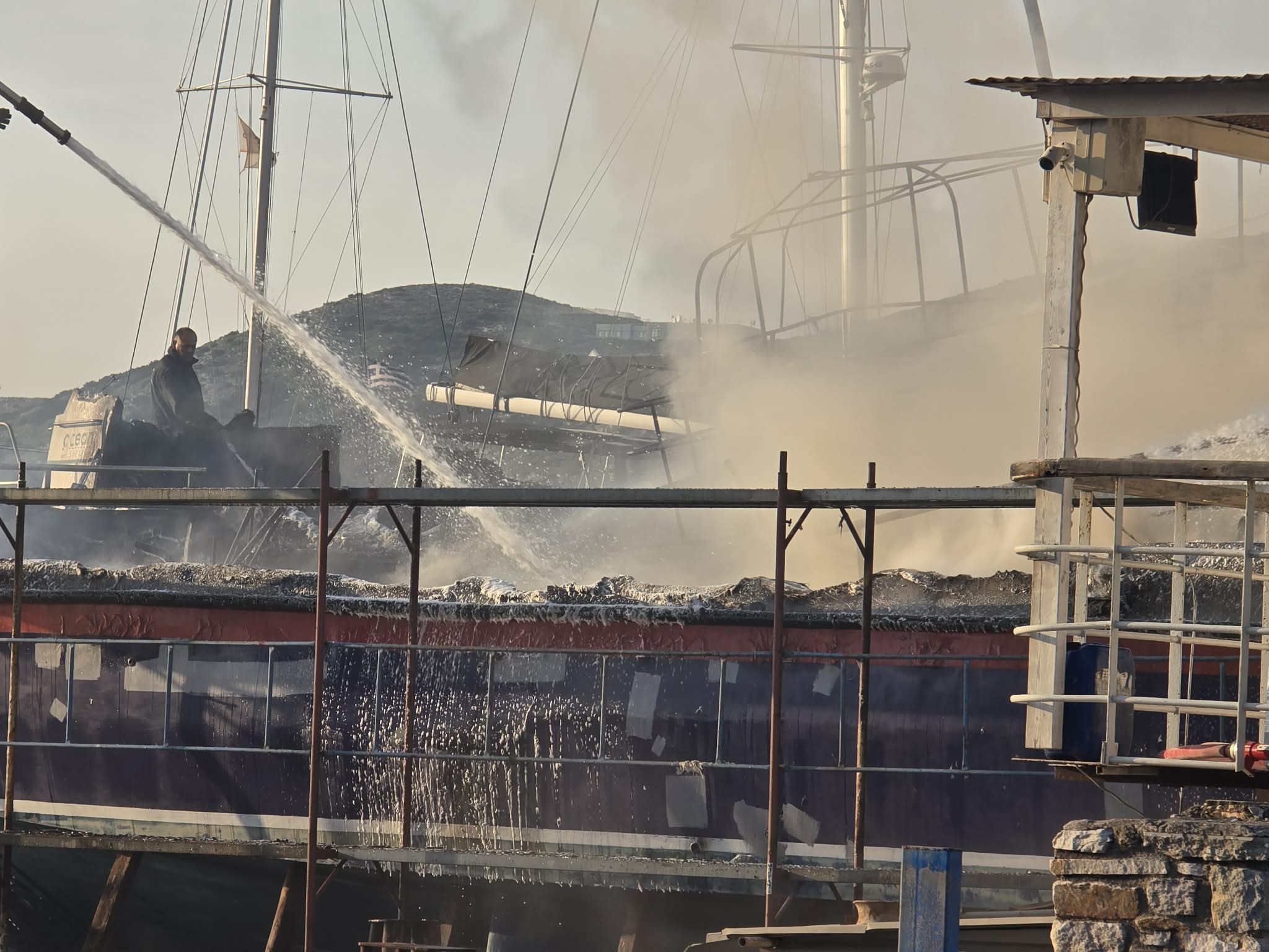 Σύρος: Στις φλόγες τυλίχτηκαν σκάφη στον Ταρσανά