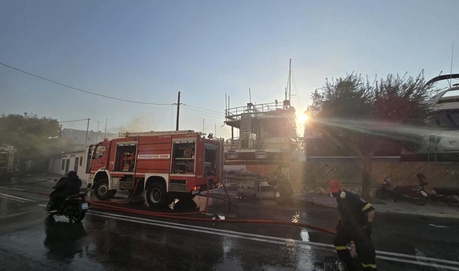 Φωτιά ξέσπασε σε σκάφος στον Ταρσανά της Σύρου, σήμερα  στις 05.30 τα ξημερώματα, για άγνωστη μέχρι στιγμής αιτία.