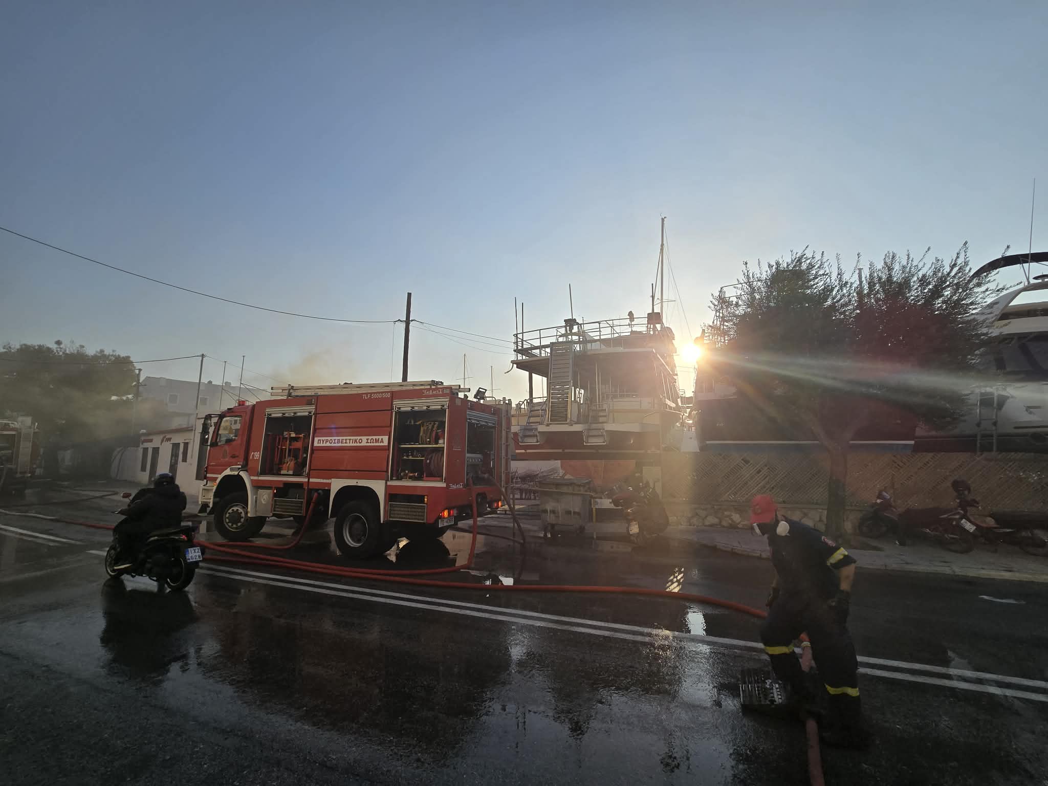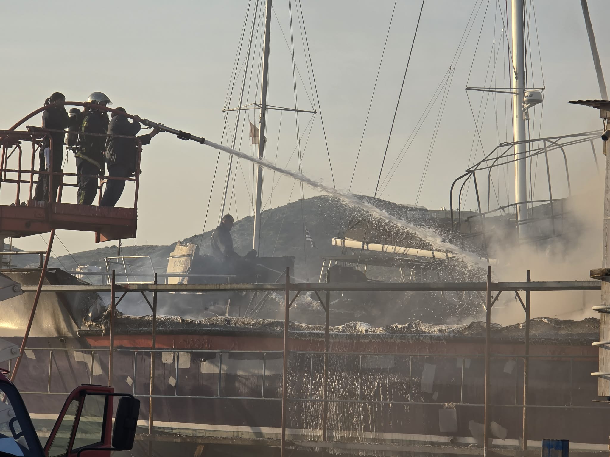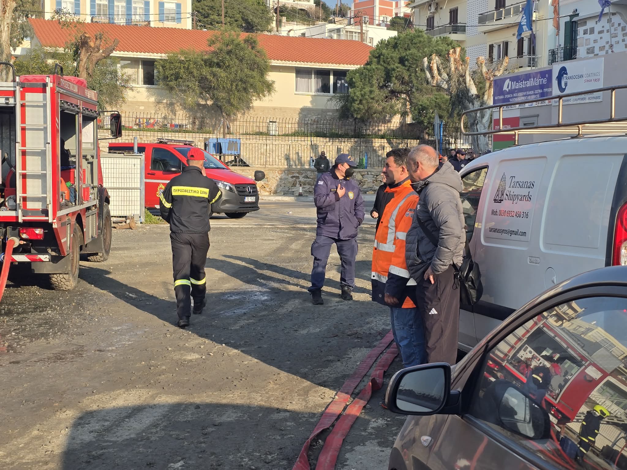 Σύμφωνα με το ρεπορτάζ της εφημερίδας, στις φλόγες τυλίχτηκαν δύο ακόμη σκάφη 10 μέτρων ενώ φόβος υπήρξε για επέκταση της φωτιάς, με αποτέλεσμα τη μεγάλη κινητοποίηση της Πυροσβεστικής Υπηρεσίας. Ειδικότερα, για τουλάχιστον δύο ώρες άνδρες της Υπηρεσίας καθώς και πέντε οχήματα μετέβησαν και παρέμειναν στην περιοχή, επιχειρώντας για την κατάσβεση και μη επέκτασή της, σε άλλα σκάφη. Στην περιοχή έφθασε και η Αστυνομία για τη ρύθμιση της κυκλοφορίας στον κεντρικό οδικό άξονα, όπως επίσης ο διοικητής της Πυροσβεστικής, η λιμενάρχης Σύρου και ο αντιδήμαρχος Περιβάλλοντος.