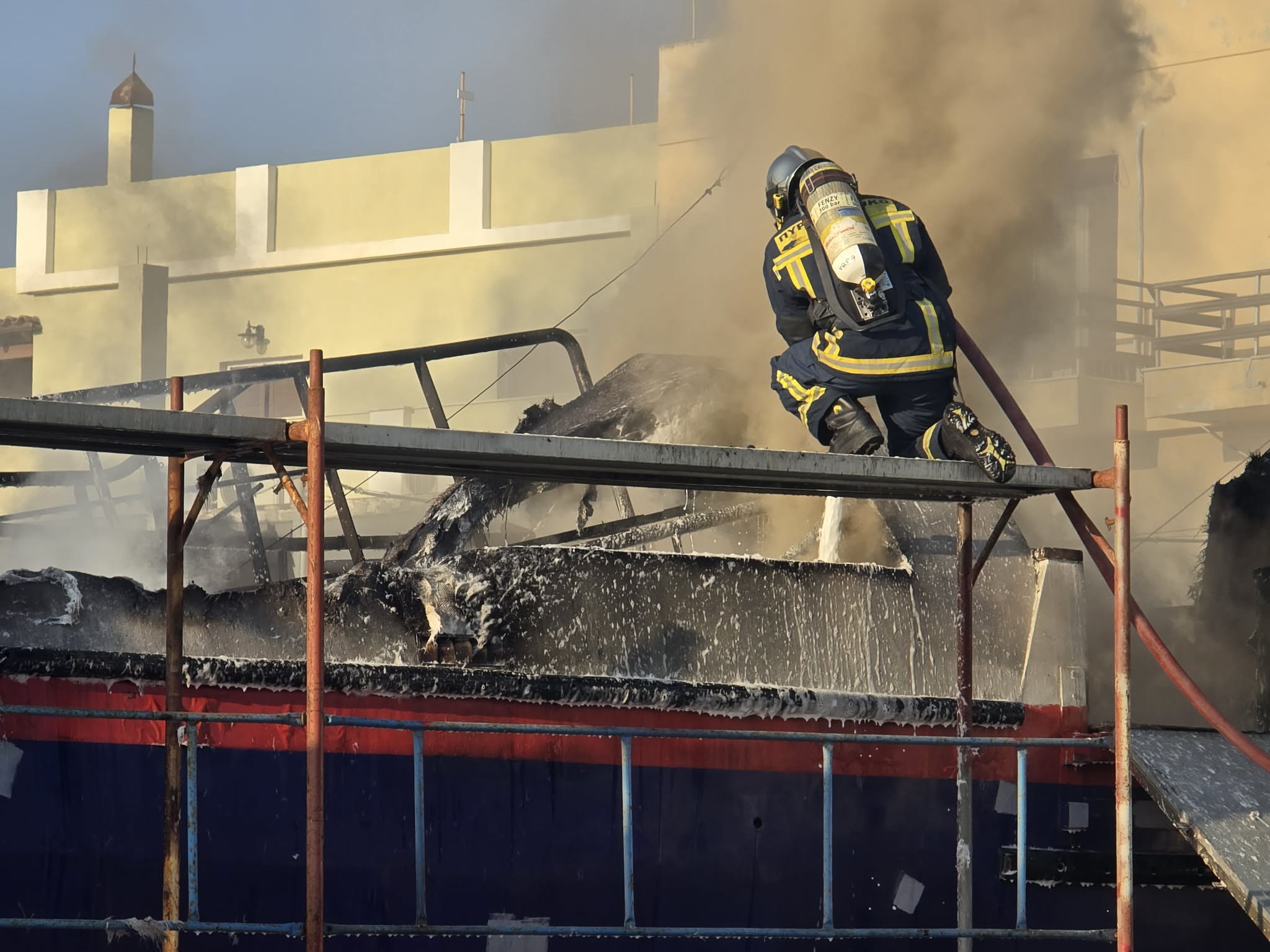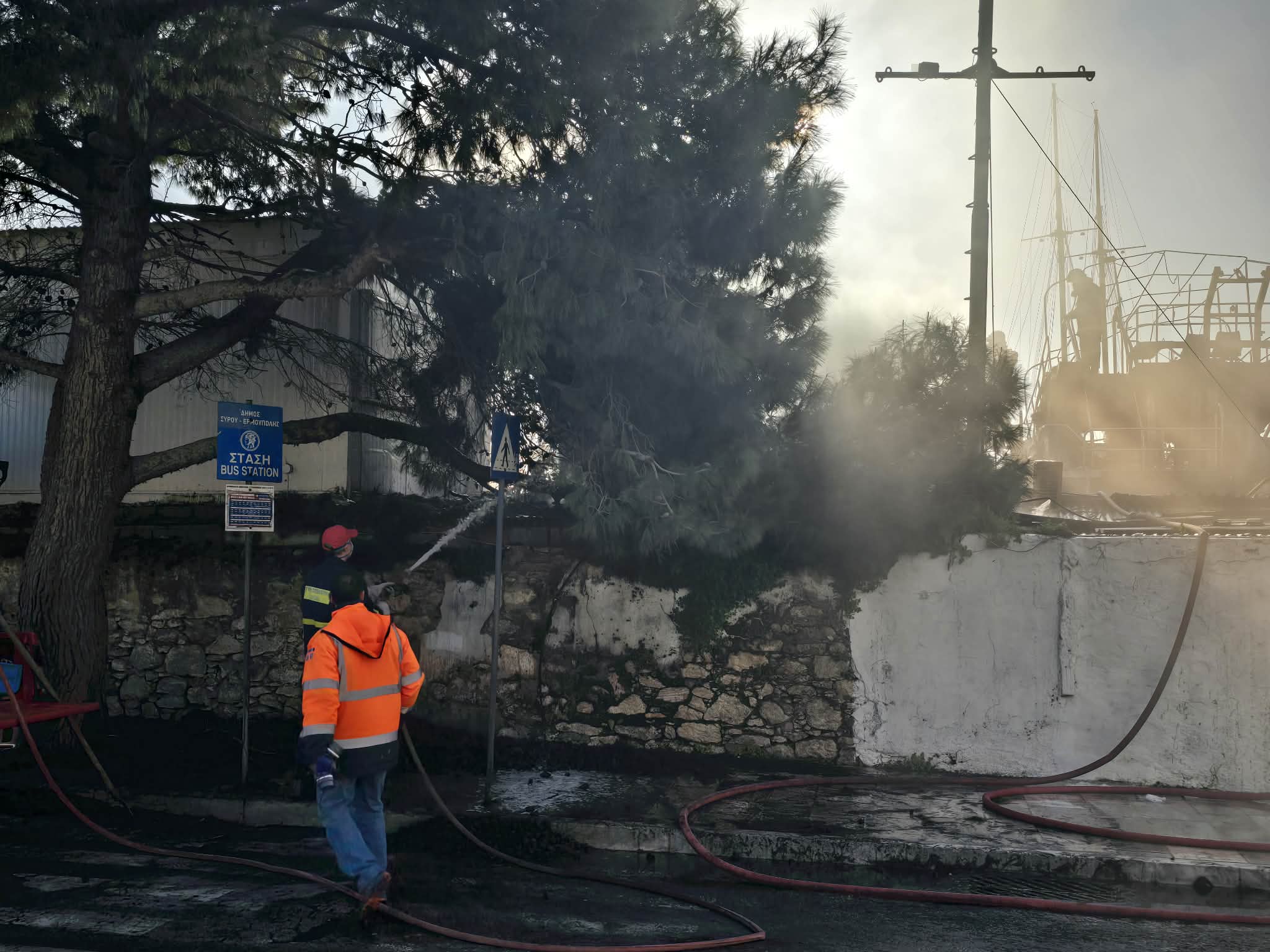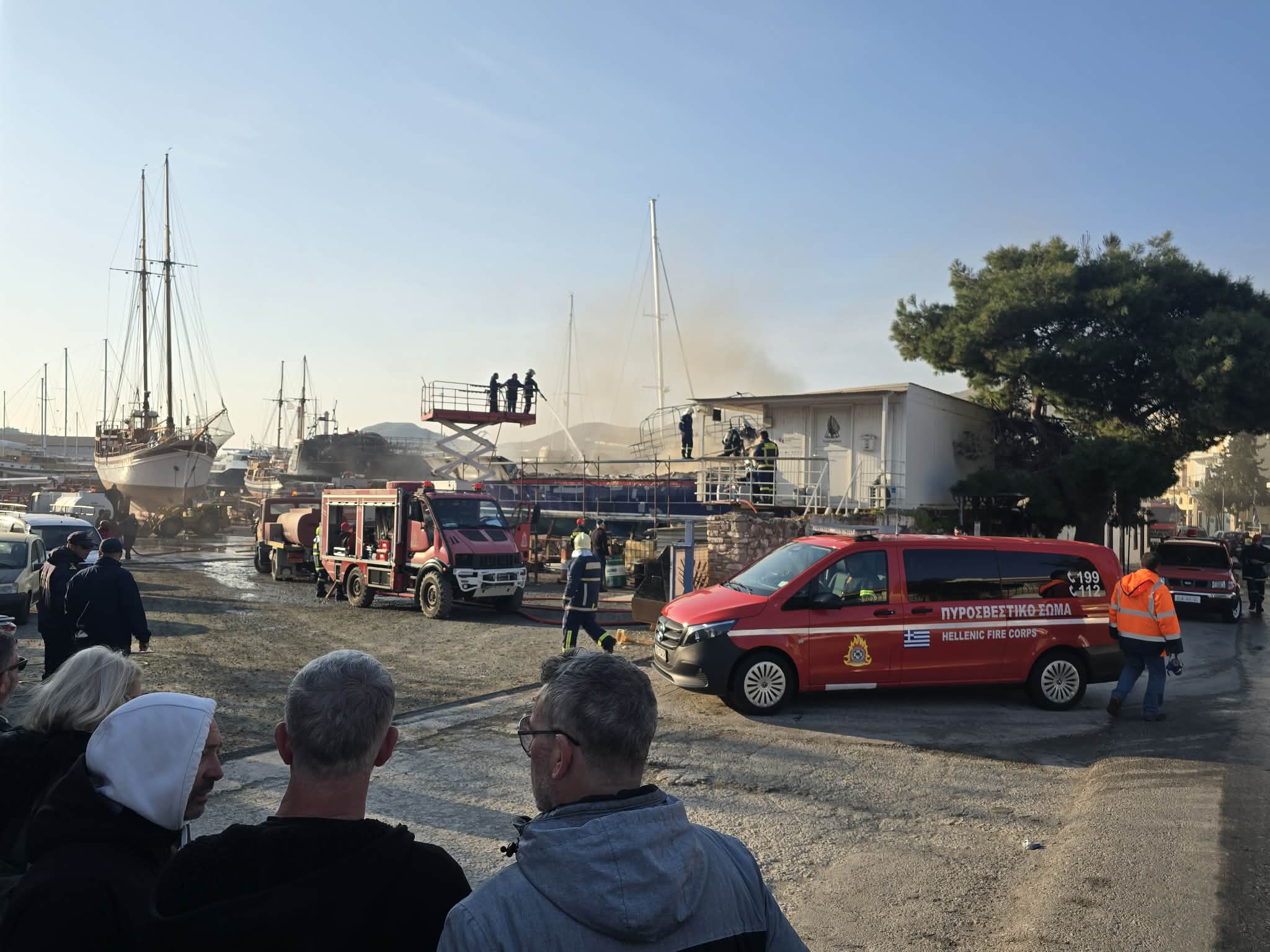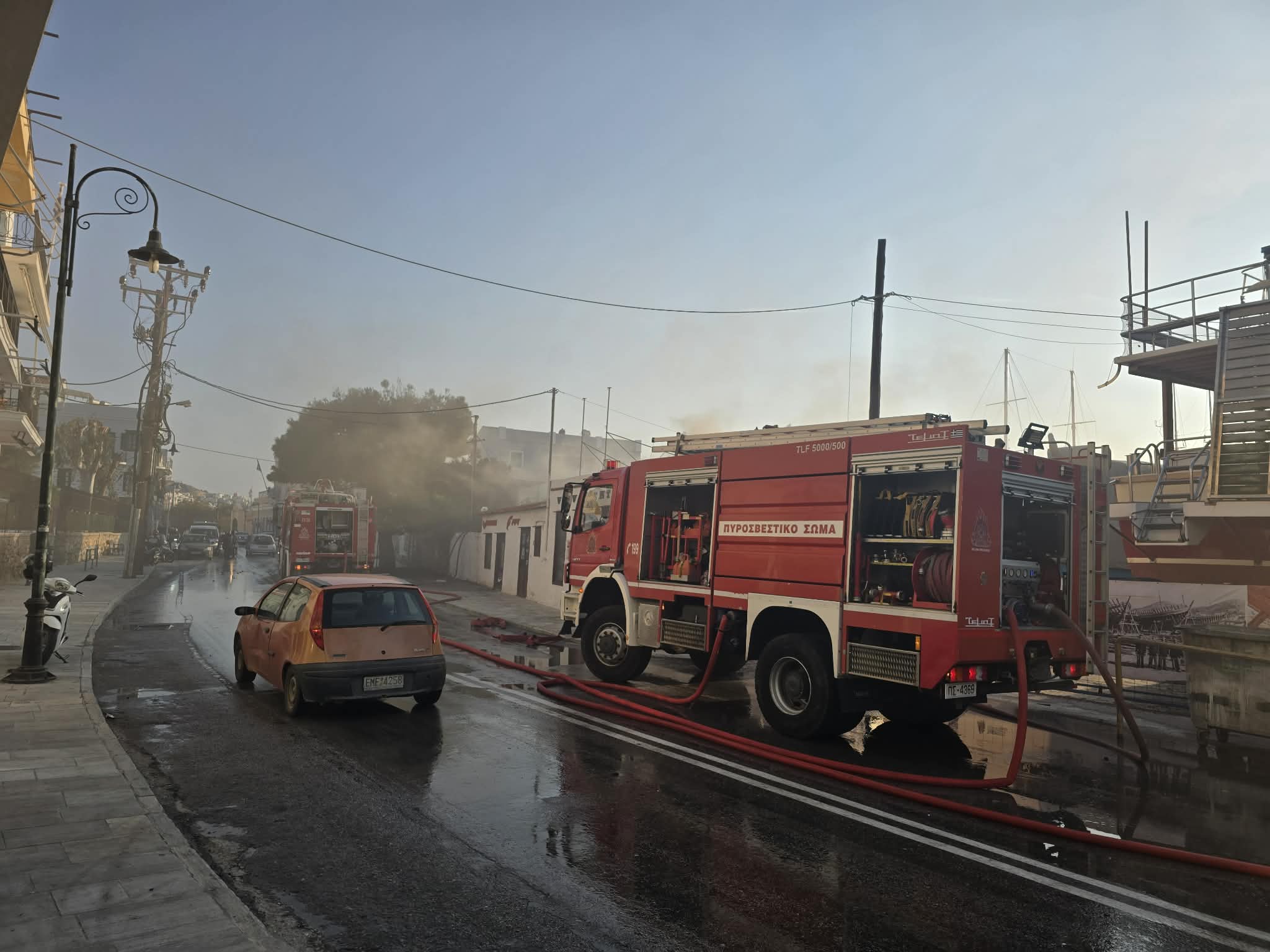 Σύμφωνα με το ρεπορτάζ της εφημερίδας, στις φλόγες τυλίχτηκαν δύο ακόμη σκάφη 10 μέτρων ενώ φόβος υπήρξε για επέκταση της φωτιάς, με αποτέλεσμα τη μεγάλη κινητοποίηση της Πυροσβεστικής Υπηρεσίας. Ειδικότερα, για τουλάχιστον δύο ώρες άνδρες της Υπηρεσίας καθώς και πέντε οχήματα μετέβησαν και παρέμειναν στην περιοχή, επιχειρώντας για την κατάσβεση και μη επέκτασή της, σε άλλα σκάφη. Στην περιοχή έφθασε και η Αστυνομία για τη ρύθμιση της κυκλοφορίας στον κεντρικό οδικό άξονα, όπως επίσης ο διοικητής της Πυροσβεστικής, η λιμενάρχης Σύρου και ο αντιδήμαρχος Περιβάλλοντος.