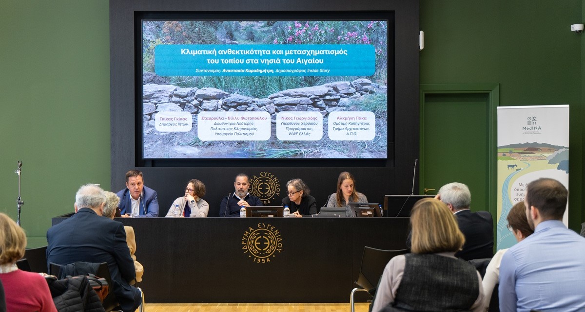 Στο ίδιο πλαίσιο, ο Νίκος Γεωργιάδης, Υπεύθυνος Χερσαίου Προγράμματος στο WWF Ελλάς, υπογράμμισε ότι η εγκατάλειψη παραδοσιακών πρακτικών και η αύξηση των τεχνητών επιφανειών έχουν διαταράξει τη φυσική απορροή των υδάτων, εντείνοντας τα πλημμυρικά φαινόμενα στα νησιά, ενώ η Αλκμήνη Πάκα, Ομότιμη Καθηγήτρια του Τμήματος Αρχιτεκτόνων στο Α.Π.Θ., επεσήμανε ότι το νησιωτικό τοπίο δεν έχει μόνο αισθητική αξία, αλλά αποτελεί ένα σύνθετο λειτουργικό σύστημα που για αιώνες εξασφάλιζε τις ανάγκες των κοινοτήτων, και έκρουσε τον κώδωνα του κινδύνου για τις ραγδαίες μεταβολές των τελευταίων δεκαετιών ως αποτέλεσμα της ανεξέλεγκτης δόμησης.