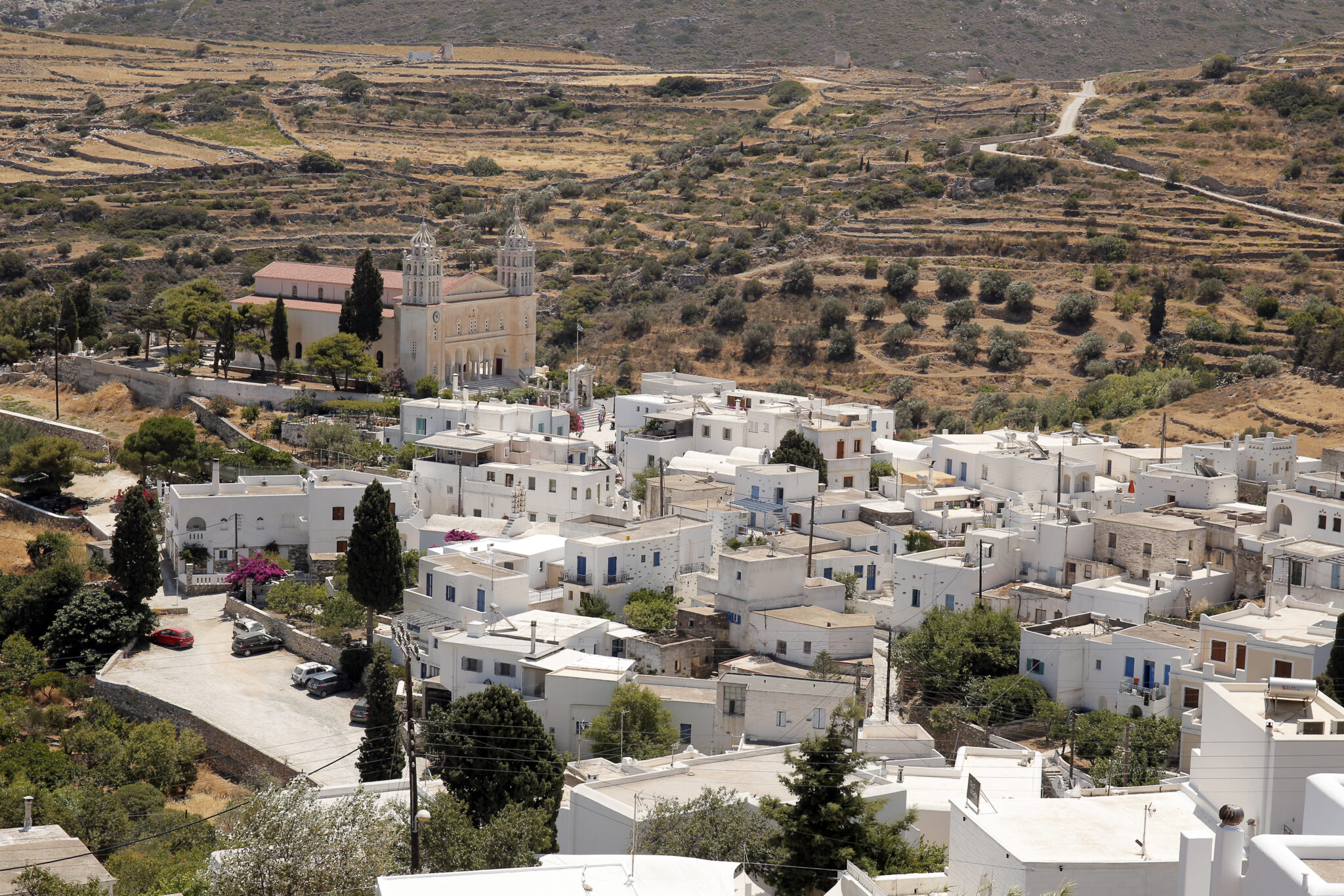 "Από τους πρώτους αιώνες της ζωής του χωριού έχουν απομείνει μερικά τέτοια σημάδια, όπως ορισμένοι από τους παλαιότερους ανεμόμυλους των Κυκλάδων και αρκετές εκκλησίες. Από αυτές, ξεχωρίζει εκείνη της Αγίας Τριάδας, η οποία -κατά κοινή ομολογία- θεωρείται μία από τις πιο μεγαλοπρεπείς εκκλησίες του νησιού, μετά την Εκατονταπυλιανή. Ολοκληρώθηκε το 1835, με τα δύο επιβλητικά μαρμάρινα κωδωνοστάσια να αποτελούν χαρακτηριστικό δείγμα του τι μπορούσαν να φτιάξουν οι Κυκλαδίτες τεχνίτες της εποχής. Μαρμάρινο είναι και το τέμπλο του ναού, εξαιρετικό τεχνούργημα Τήνιου μαρμαρογλύπτη. Μάλιστα, η βραδιά της Ανάστασης στο χωριό και στην εκκλησία της Αγίας Τριάδας είναι πραγματικά ξεχωριστή.