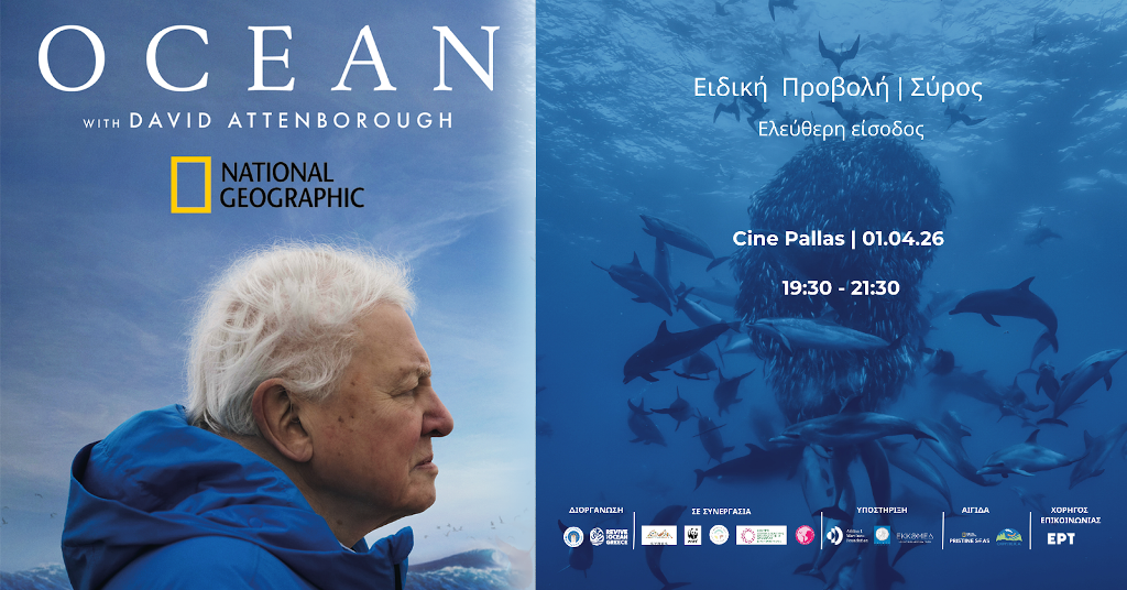 Με επιτυχία πραγματοποιήθηκε την Τετάρτη 1 Απριλίου 2026, στον κινηματογράφο ΠΑΛΛΑΣ, στην Ερμούπολη Σύρου, η ειδική προβολή του διεθνούς ντοκιμαντέρ «Ocean with David Attenborough», με αφηγητή τον θρυλικό David Attenborough, προσελκύοντας συνολικά 110 άτομα.