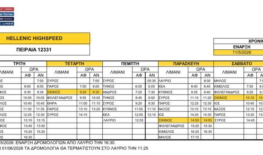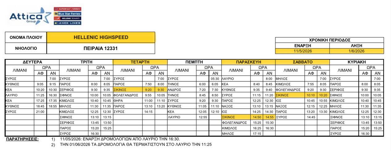 Το ταχύπλοο Hellenic Highspeed αναμένεται να αντικαταστήσει το πλοίο “Άρτεμις” κατά την περίοδο της ετήσιας ακινησίας του, από 11 Μαΐου έως 1 Ιουνίου.