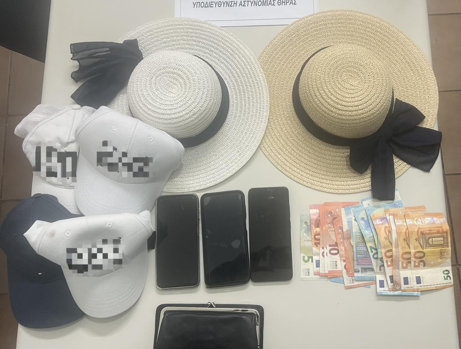 Στην κατοχή τους βρέθηκαν και κατασχέθηκαν 585 ευρώ, 6 καπέλα και πλήθος ρουχισμού.