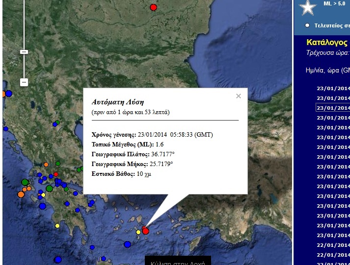 Ασθενής σεισμική δόνηση μεγέθους 3,8 βαθμών της κλίμακας Ρίχτερ σημειώθηκε σήμερα τα ξημερώματα στον υποθαλάσσιο χώρο των Κυκλάδων. Το εστιακό βάθος του σεισμού υπολογίζεται στα 10χλμ. Σημειώνεται πως τον σεισμό κατέγραψε ο σεισμογράφος του Σεισμολογικού Δικτύου του Γεωδυναμικού Ινστιτούτου του Εθνικού Αστεροσκοπείου Αθηνών, που είναι τοποθετημένος στην Ίο.