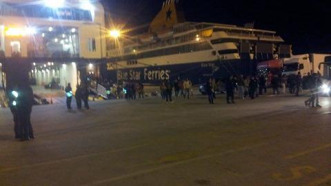 Αυτή τη στιγμή αποβιβάζεται πλήθος επιβατών, οι οποίοι σκόπευαν να ταξιδέψουν σήμερα, λόγω της χθεσινής απαγόρευσης απόπλου, εξαιτίας των καιρικών συνθηκών στην θάλασσα του Αιγαίου, ενω η ανακοίνωση για τους λόγους της εκκένωσης εξέδωσαν οι υπεύθυνοι του ΟΛΠ, περίπου 20 λεπτά μετά την απομάκρυνση των επιβατών.