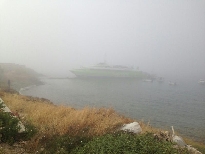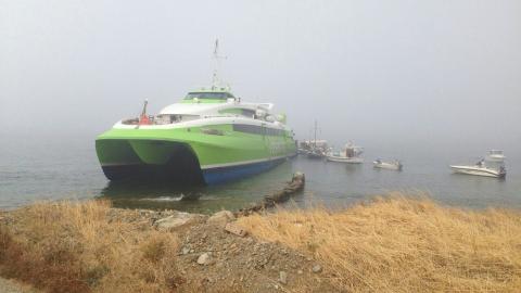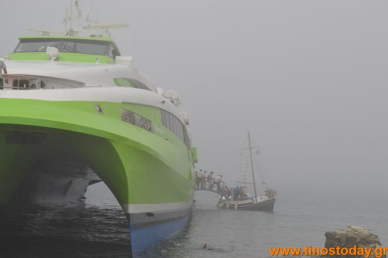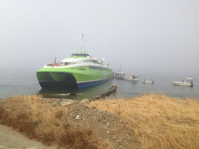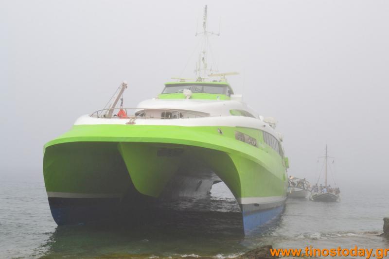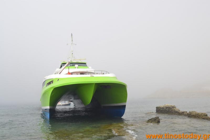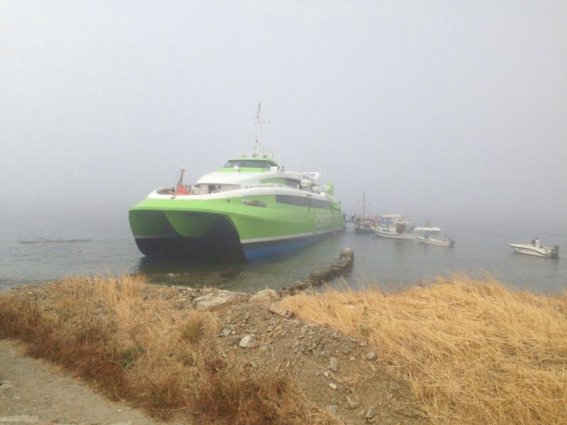 Προσάραξη λόγω ομίχλης του Flying Cat 4 έξω από το λιμάνι της Τήνου