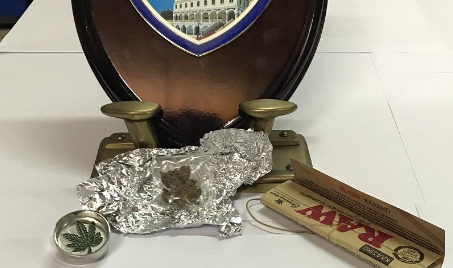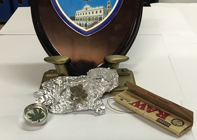 Συνελήφθη, βραδινές ώρες την 08-08-2017, στον εξωτερικό λιμένα Τήνου από Στελέχη του Λιμεναρχείου Τήνου, 18χρονος ημεδαπός, διότι μετά από διενέργεια έρευνας βρέθηκε εντός προσωπικής αποσκευής, μία συσκευασία από αλουμινόχαρτο που εμπεριείχε ακατέργαστη ινδική κάνναβη μικτού βάρους δύο γραμμαρίων (02 γρ.).