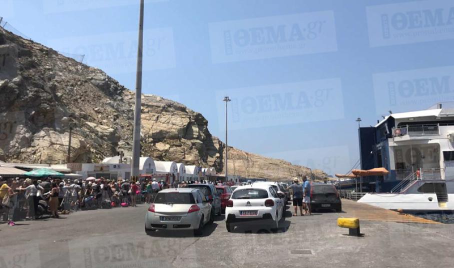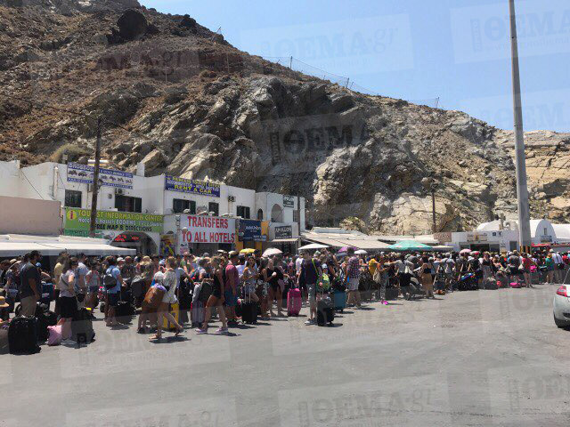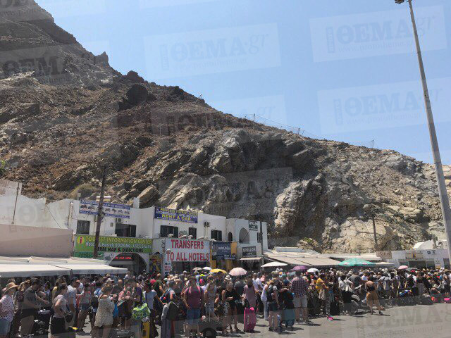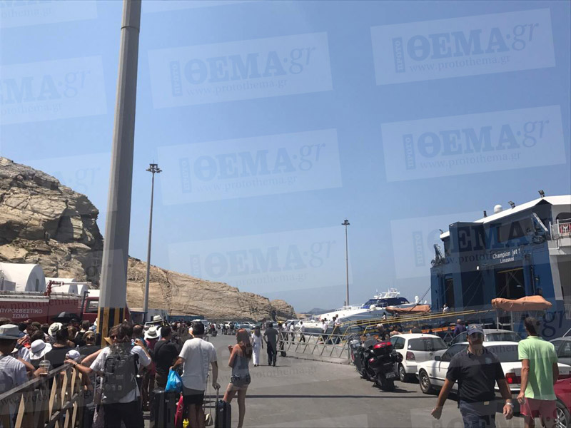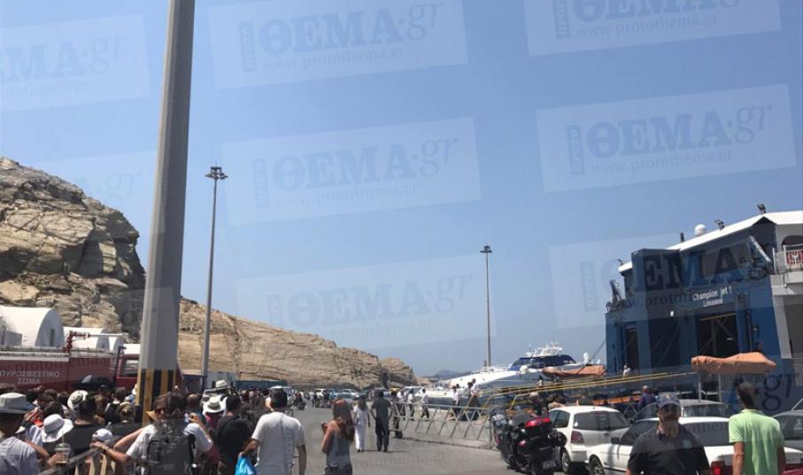 Τεράστια ταλαιπωρία σε δεκάδες επισκέπτες της Σαντορίνης προκάλεσε τηλεφώνημα για τοποθέτηση βόμβας σε αγκυροβολημένο πλοίο στο λιμάνι του νησιού, με τους επιβάτες που ανέμεναν την εξυπηρέτησή τους με τα πλοία «Νήσος Σάμος», «Champions Jet I» και «Sea Jet 2» να αναγκαστούν σε περαιτέρω αναμονή και μάλιστα υπό υψηλές θερμοκρασίες.