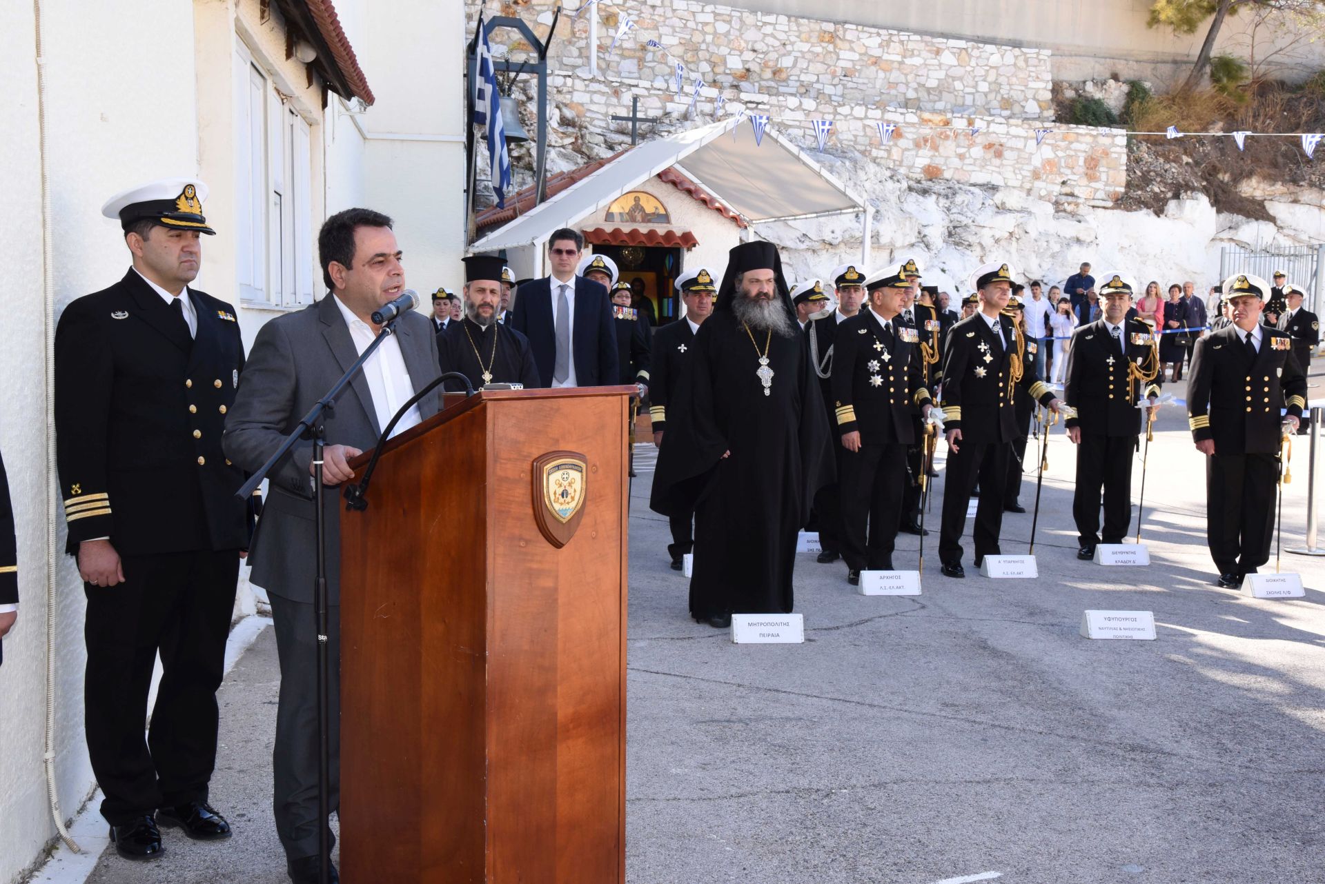 «Αγαπητοί Πατέρες της εκκλησίας, κύριε Γενικέ του Υπουργείου, κύριε Αρχηγέ του Λιμενικού Σώματος Ελληνικής – Ακτοφυλακής, αγαπητοί συγγενείς και γονείς των νέων Λιμενοφυλάκων, νέοι Λιμενοφύλακες.