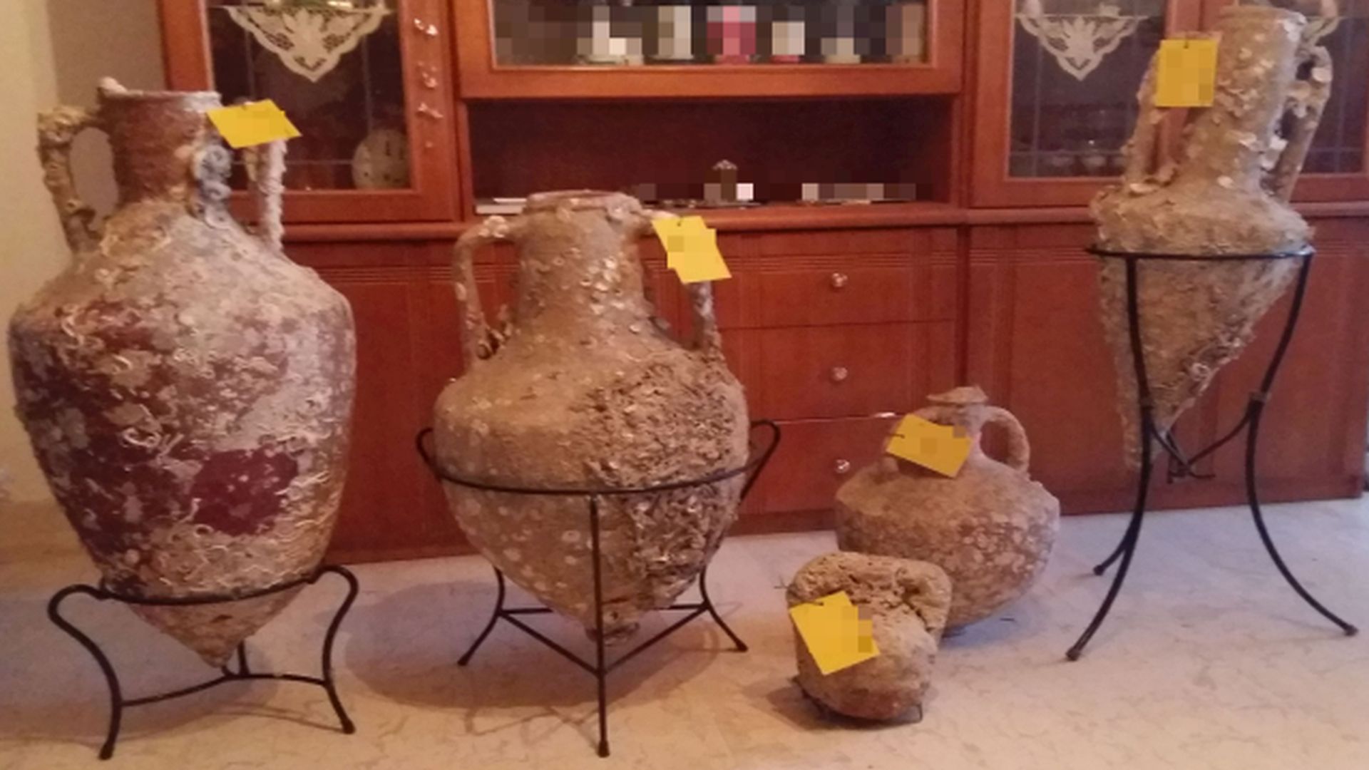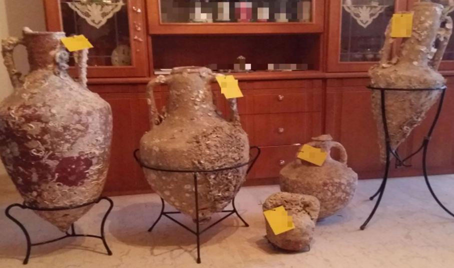 Συγκεκριμένα, κατόπιν αξιοποίησης πληροφοριών, σε νομότυπη έρευνα που διενεργήθηκε σε δύο (02) οικίες ιδιοκτησίας του ανωτέρω, από στελέχη του Γραφείου Ασφάλειας των Λιμενικών Αρχών Νάξου και Ελευσίνας, παρουσία δικαστικού λειτουργού και με τη συνδρομή τοπικού αρχαιολόγου, εντοπίστηκαν συνολικά δώδεκα (12) εμπορικοί αμφορείς και δύο (02) επιτραπέζια αγγεία.