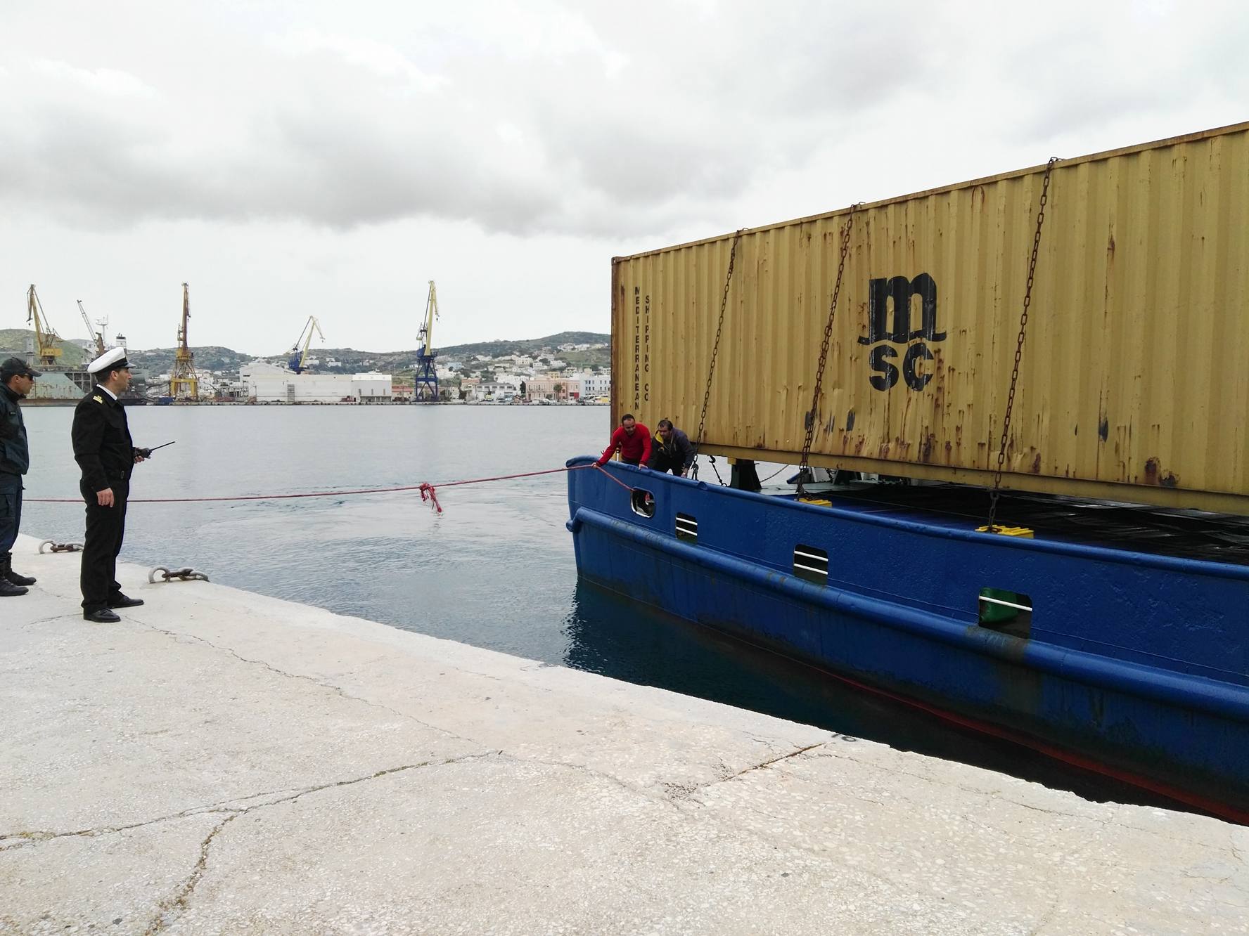 Ήδη αυξημένη δύναμη της Λιμενικής Αρχής Σύρου και της 6ης ΠΕΔΙΛΣ, παρουσία του διοικητή Νίκου Σκευοφύλακα και του υπολιμενάρχη Σύρου, Γιάννη Βαμβακούση πραγματοποιεί το προανακριτικό έργο, προκειμένου να επιβεβαιωθεί αν πράγματι το φορτίο μεταφέρεται λαθραία.