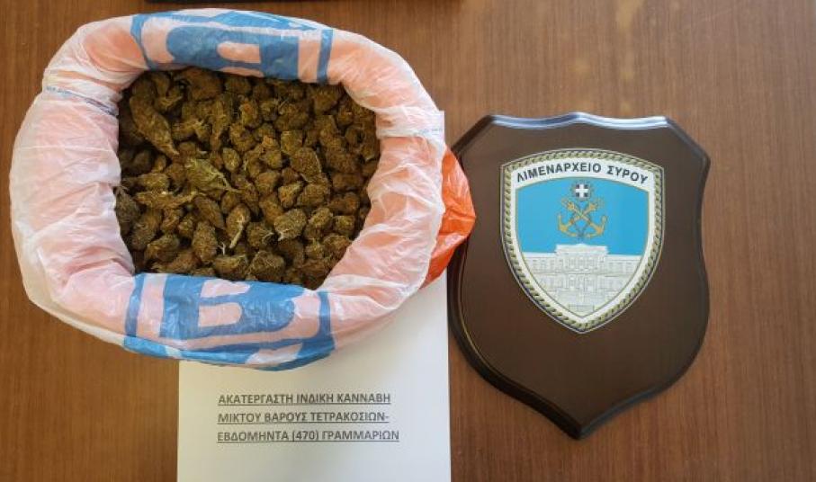 Η σύλληψη ενός 35χρονου άνδρα μη Συριανού, ο οποίος αποβιβάστηκε από το πλοίο Blue Star Naxos κι έφερε στις αποσκευές του πακέτο μισού κιλού ακατέργαστης ινδικής κάνναβης, καθώς και η διαδικασία της προανάκρισης που ακολούθησε από τη Λιμενική Αστυνομία, συνέβαλλαν στον εντοπισμό και τη σύλληψη δύο ακόμη προσώπων που σχετίζονταν με τον ίδιο, αφού στην κατοχή τους, βρέθηκε και κατασχέθηκε παρομοίως μεγάλη ποσότητα ναρκωτικών.