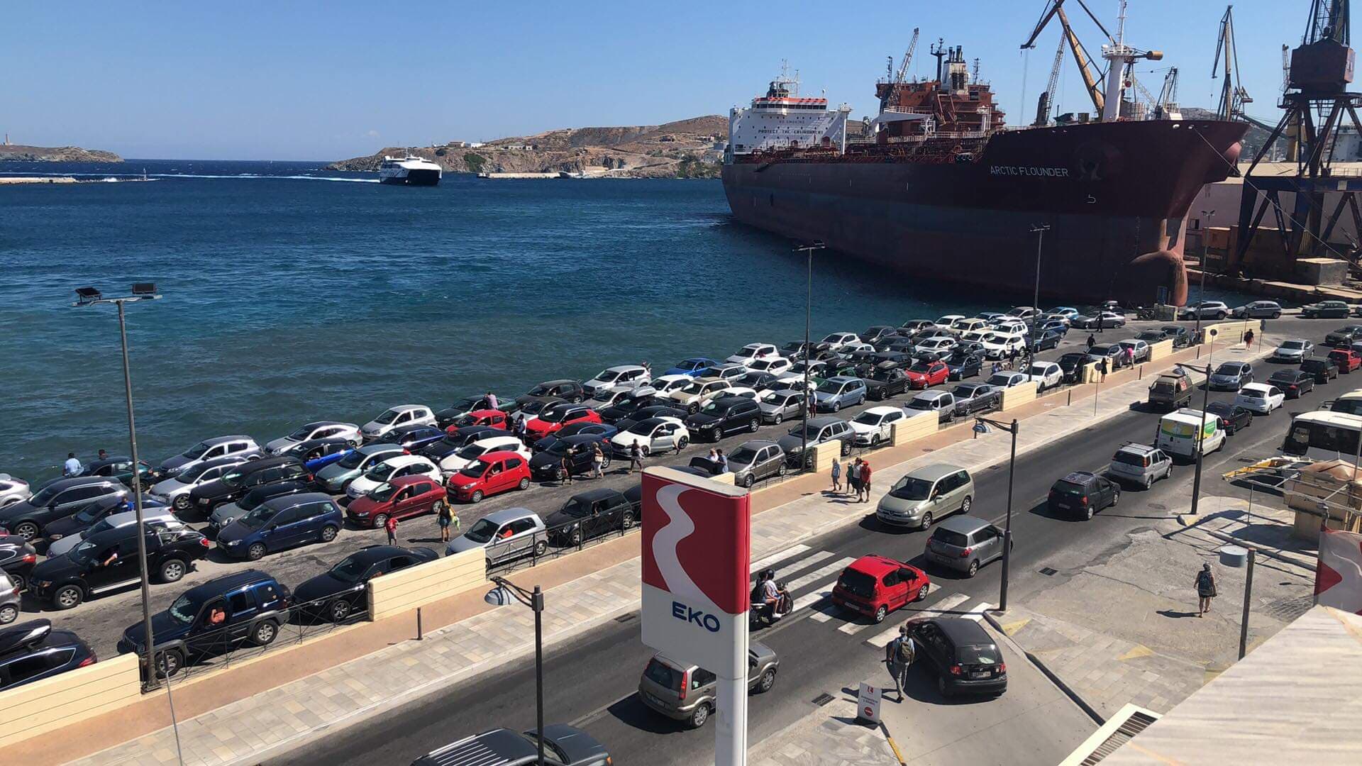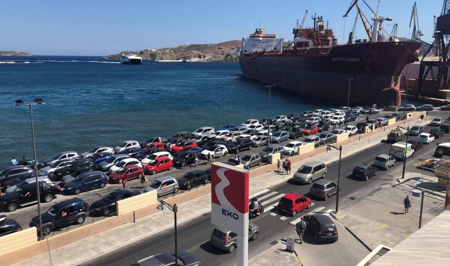 Οι δυνάμεις της Λιμενικής Αρχής ανέπτυξαν τον σχεδιασμό τους σε όλο το μήκος της παραλιακής οδού της Ερμούπολης, ενώ αξιοποιήθηκε για πρώτη φορά και ο χώρος της Ακτής Καταδρομικού Έλλη (όπισθεν ΑΕΝ), ώστε ένας αριθμός περί των 80 οχημάτων να μεταβούν σταδιακά εντός του λιμένα, συνοδεία λιμενικών προκειμένου να μην υπάρξει συμφόρηση.