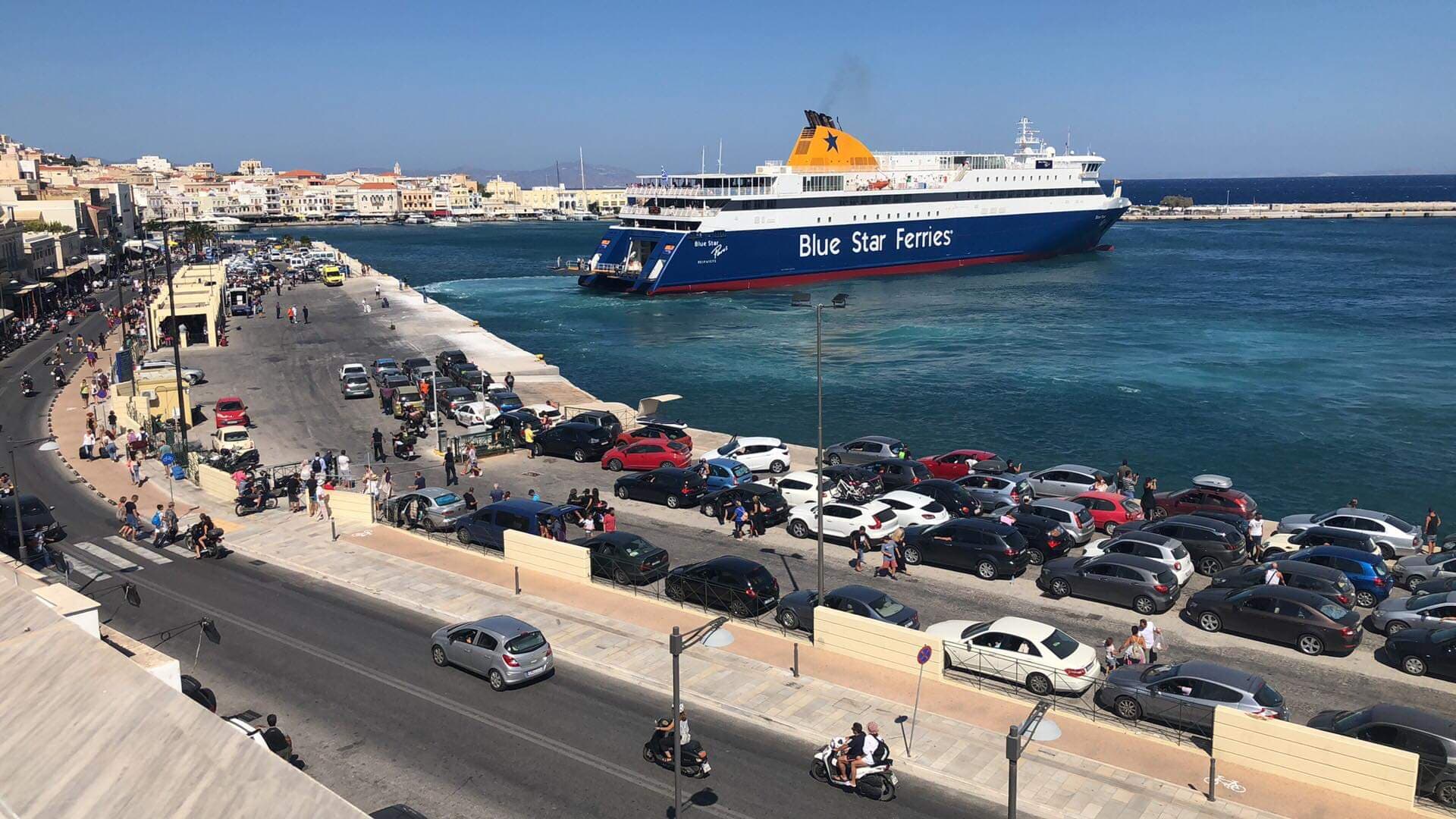 Οι αφίξεις του Blue Star 1, του WorldChampion Jet και του Blue Star Paros που πραγματοποιήθηκαν ταυτόχρονα στο λιμάνι της πόλης, απαίτησαν τη λήψη ιδιαίτερων μέτρων από πλευράς Λιμεναρχείου Σύρου, προκειμένου να διεκπεραιωθεί ορθά ο όγκος της αποβίβασης και επιβίβασης οχημάτων, δικύκλων κι επισκεπτών.