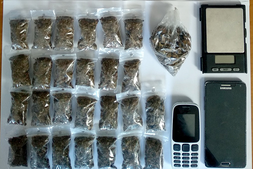 • Κάνναβη ακατέργαστη συνολικού βάρους 139,1 γραμμαρίων διαμοιρασμένη σε μικροσυσκευασίες έτοιμες για πώληση