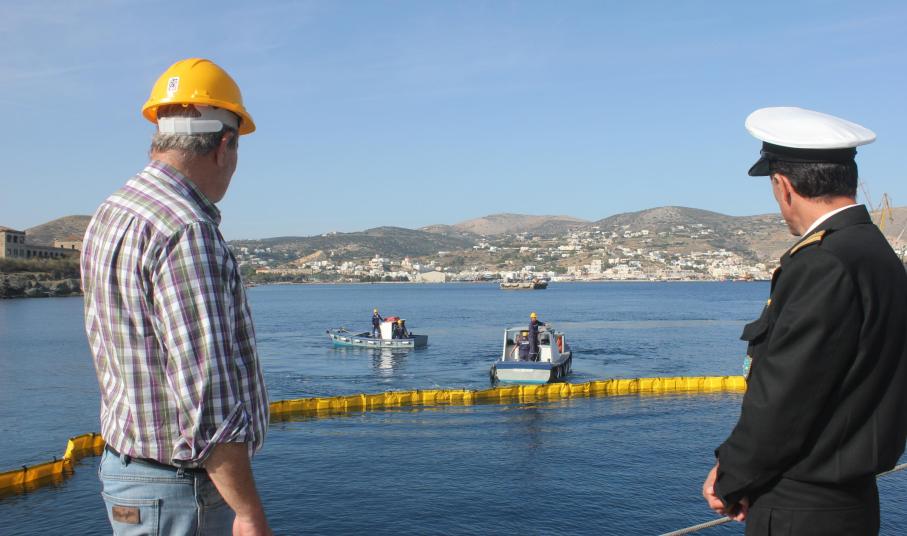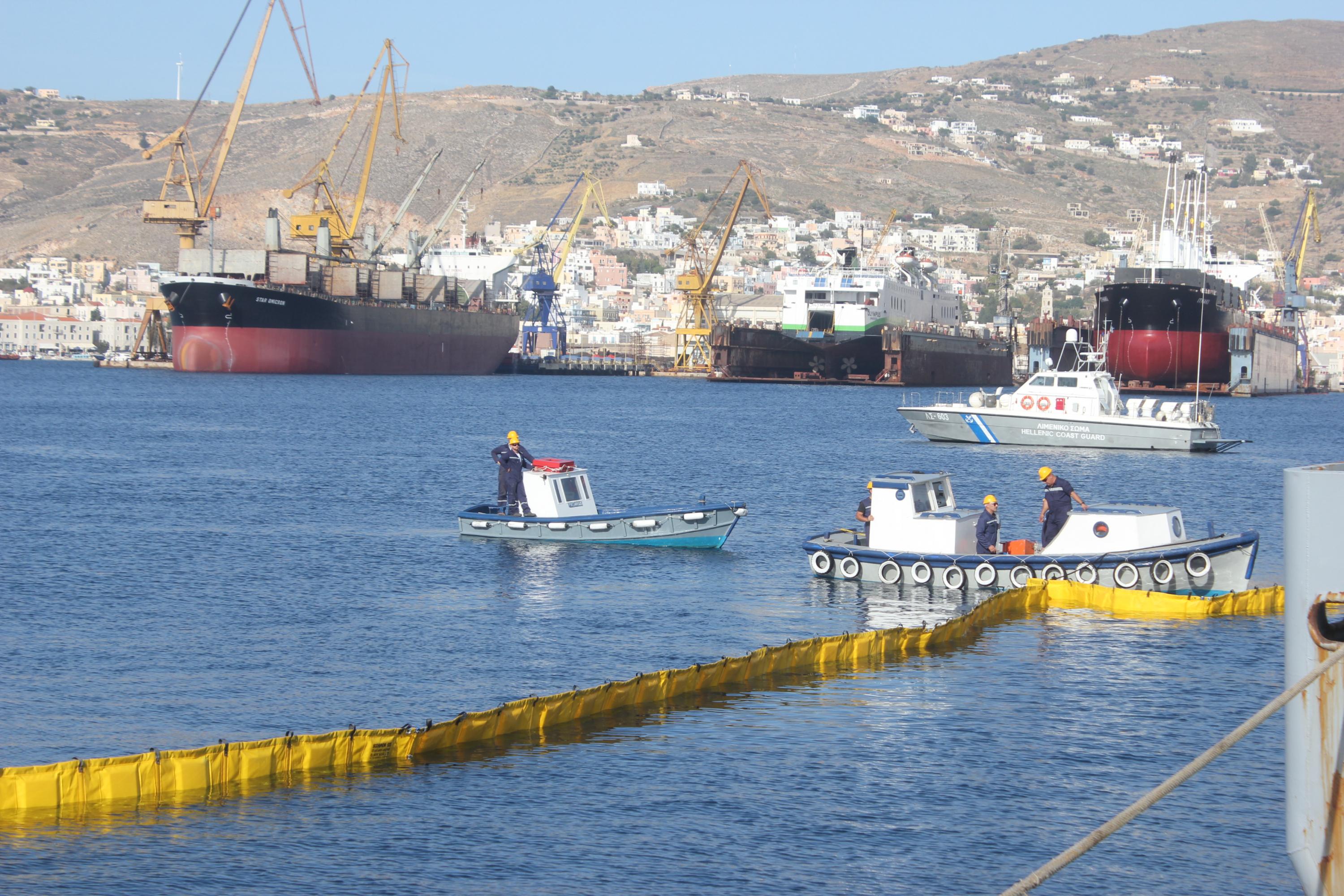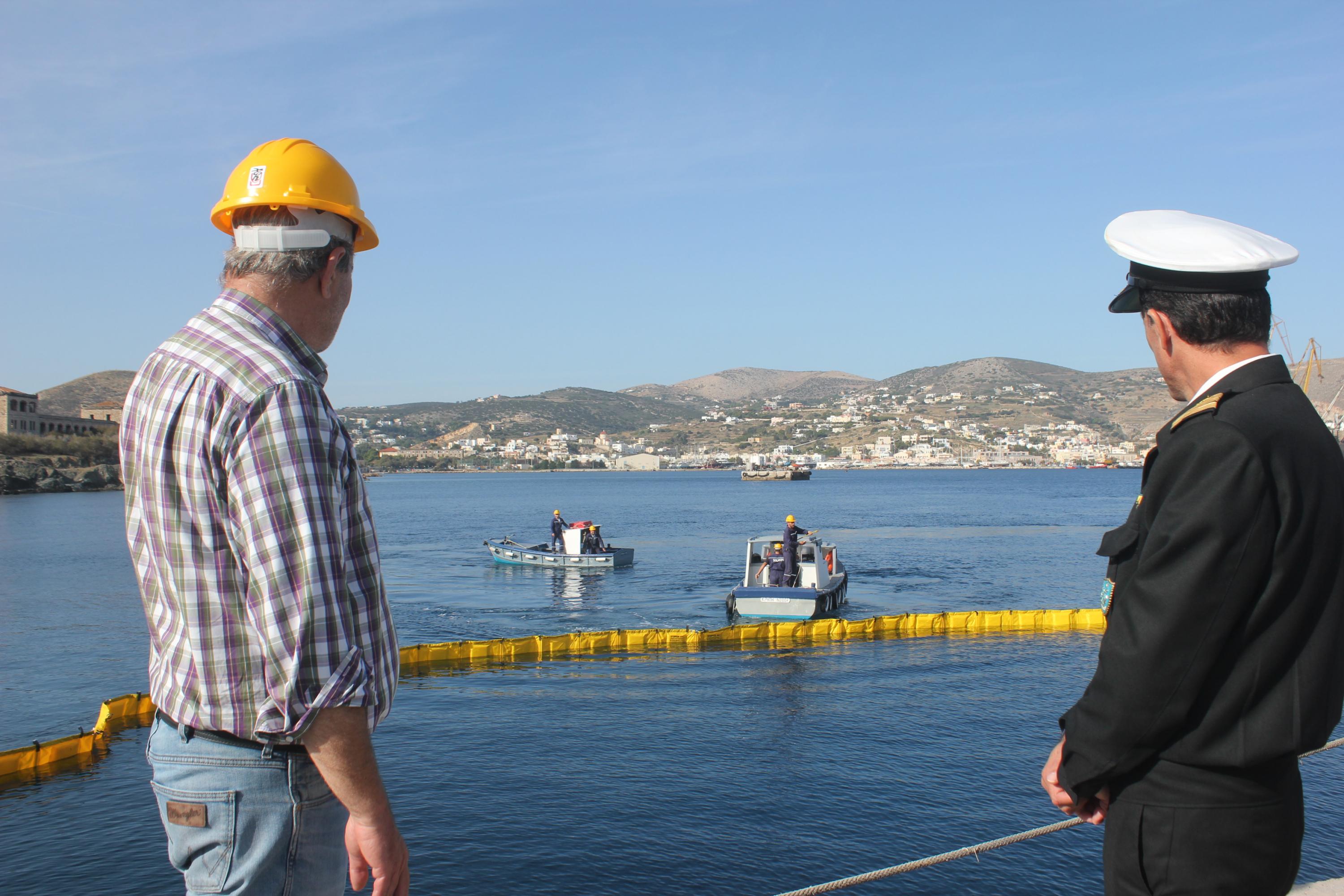 “Οχυρωμένο” απέναντι σε περιστατικά θαλάσσιας ρύπανσης είναι το λιμάνι της Σύρου, όπως υποστήριξαν οι πλευρές του Λιμεναρχείου Σύρου και της SEKAVIN, στο πλαίσιο άσκησης ετοιμότητας που ανέπτυξαν χθες το πρωί, στο νότιο τμήμα του λιμενοβραχίονα της Ερμούπολης.