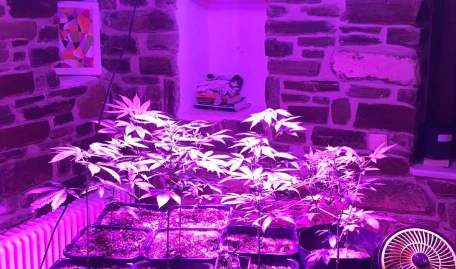 - 35 φυτά κάνναβης, ύψους έως 50 εκατοστά, τα οποία καλλιεργούσε σε γλάστρες υπό ελεγχόμενες περιβαλλοντικές συνθήκες μέσα σε ειδικά διαμορφωμένο δωμάτιο
