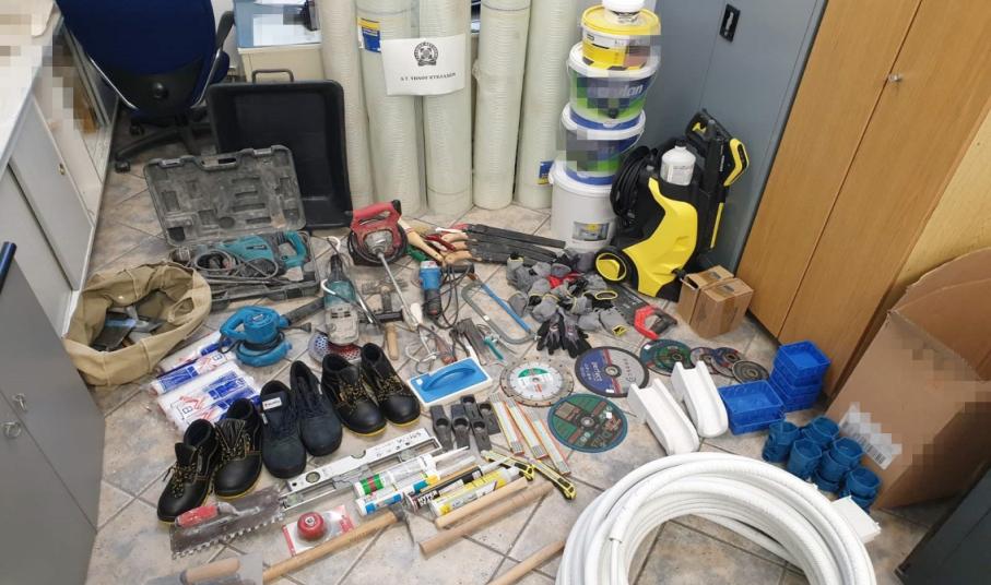 Σε έρευνα που έγινε στο σπίτι του, παρουσία δικαστικού λειτουργού, βρέθηκαν και κατασχέθηκαν διάφορα οικοδομικά υλικά και εργαλεία προερχόμενα από τις κλοπές.