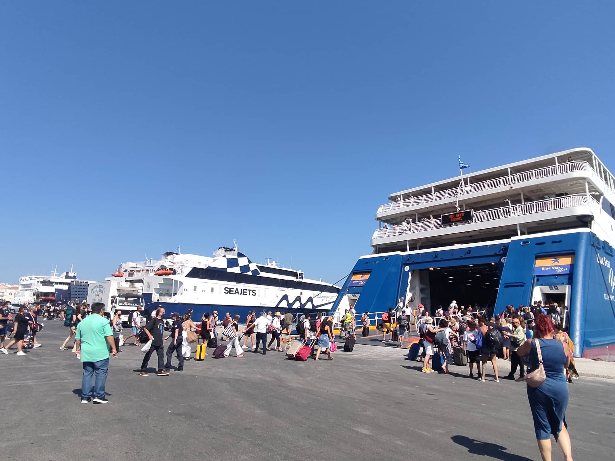 Σημειώνεται πως, χθες, υπήρξε ένα έκτακτο δρομολόγιο της Blue Star, ενώ όλες οι υπόλοιπες αναχωρήσεις ήταν στο πλαίσιο των προγραμματισμένων ακτοπλοϊκών προσεγγίσεων.