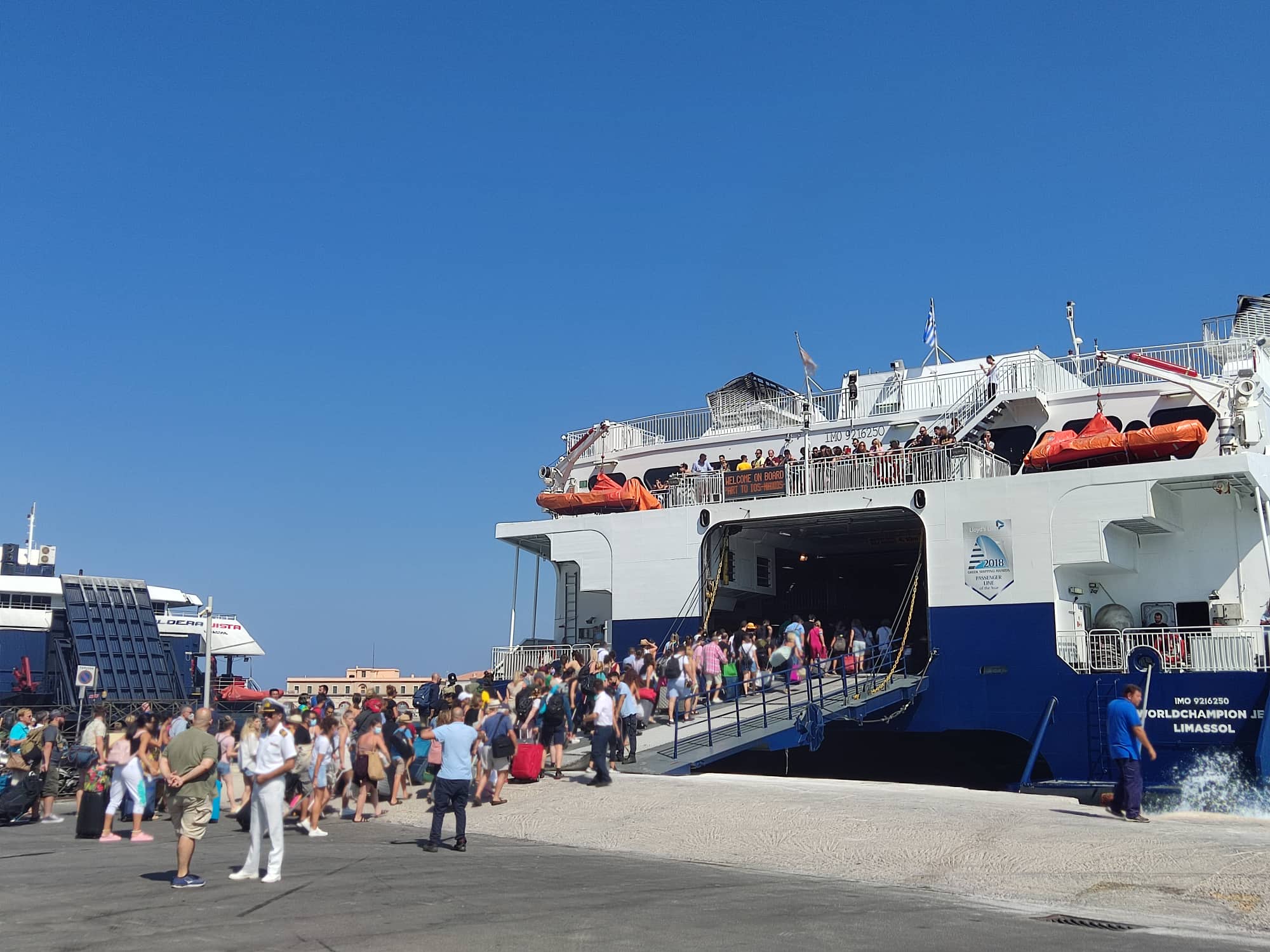 Τη διαδικασία επιβίβασης και εξυπηρέτησης του κόσμου επέβλεψε και ο Λιμενάρχης Σύρου, Γιάννης Βαμβακούσης που ήταν στο λιμάνι της Ερμούπολης.