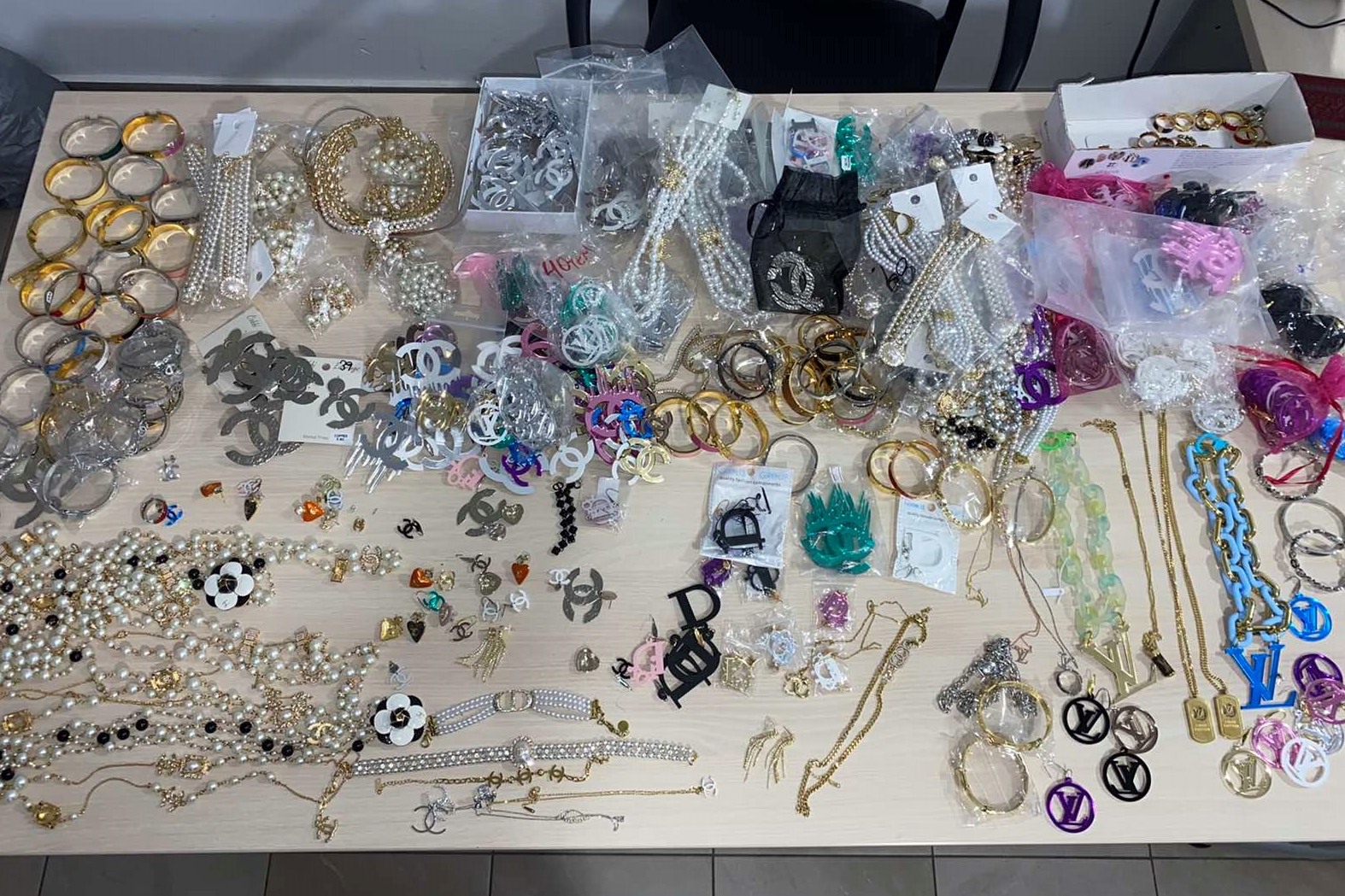 Ειδικότερα, στο πλαίσιο αστυνομικών δράσεων για την καταπολέμηση του παραεμπορίου – της διακίνησης απομιμητικών προϊόντων και την προστασία του καταναλωτικού κοινού, χθες το μεσημέρι έπειτα από έλεγχο που έγινε σε δύο εμπορικά καταστήματα, τα οποία λειτουργούσαν ως προσωρινά υπεύθυνοι οι συλληφθέντες, βρέθηκαν να διατίθενται προς πώληση συνολικά -886- τεμάχια ειδών αξεσουάρ (βραχιόλια, δακτυλίδια, σκουλαρίκια, κολιέ) τα οποία όπως διαπιστώθηκε αποτελούν προϊόντα απομίμησης, παραποίησης και αντιγραφής γνήσιων εμπορικών σημάτων γνωστών εταιρειών.