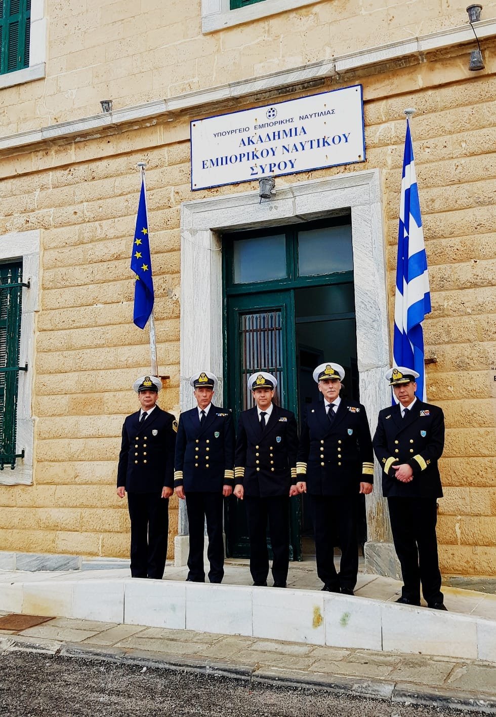 Στη συνέχεια ο κ. Αρχηγός, επισκέφθηκε την Ακαδημία Εμπορικού Ναυτικού Σύρου και συναντήθηκε με τον Διοικητή Πλοίαρχο Λ.Σ. Καραμήτσα Παναγιώτη και το προσωπικό της Σχολής και ενημερώθηκε εκτενώς για τη δραστηριότητα τους, ενώ επιθεώρησε τους χώρους εκπαίδευσης και φοίτησης των σπουδαστών.