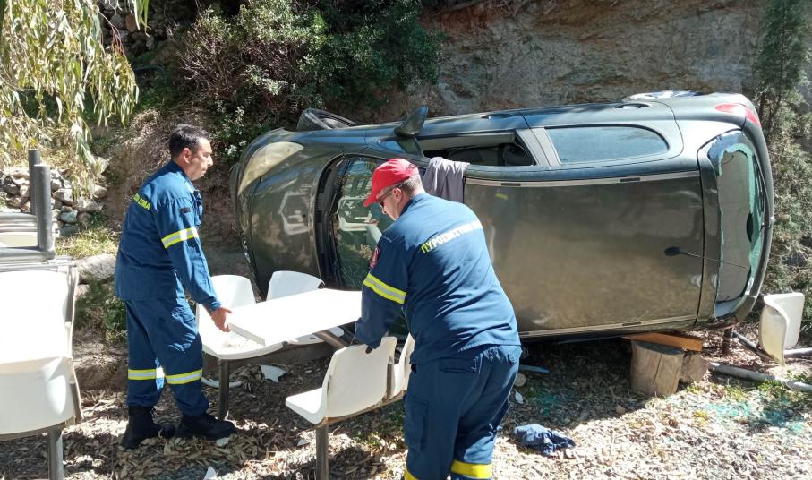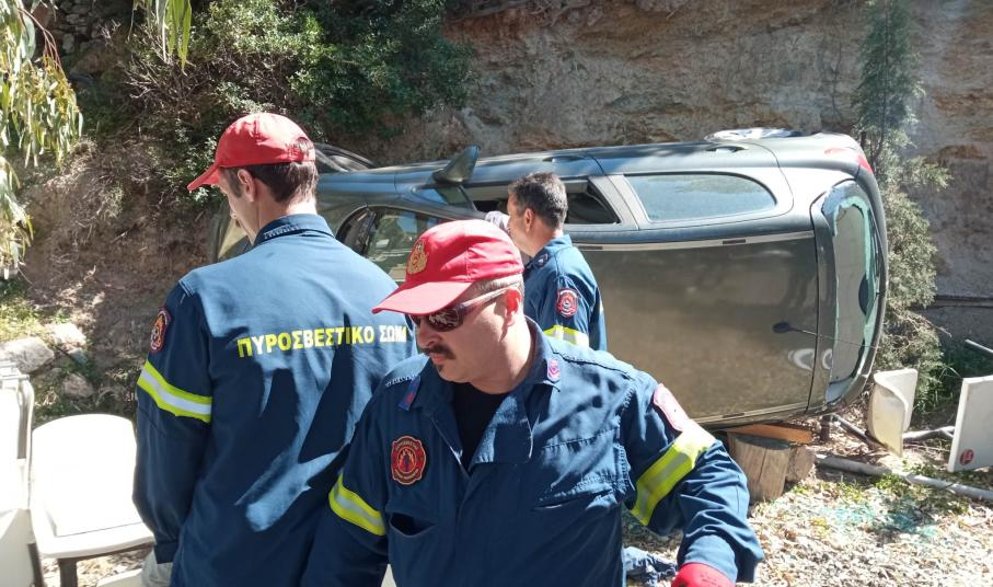 Σύρος - Γαλησσάς: Όχημα έπεσε από τον δρόμο μέσα σε αυλή ιδιωτικής επιχείρησης - Τραυματίστηκε ο οδηγός