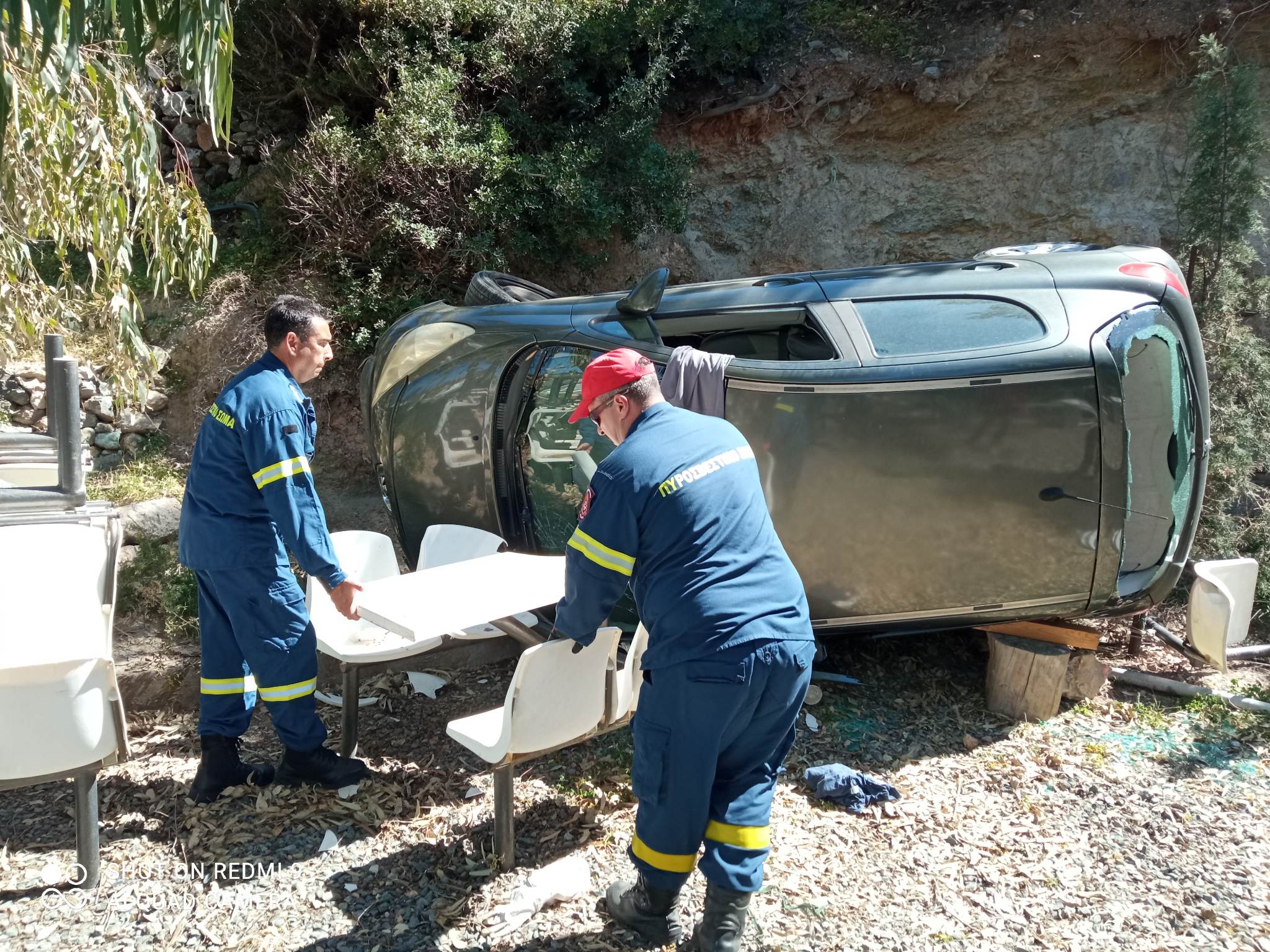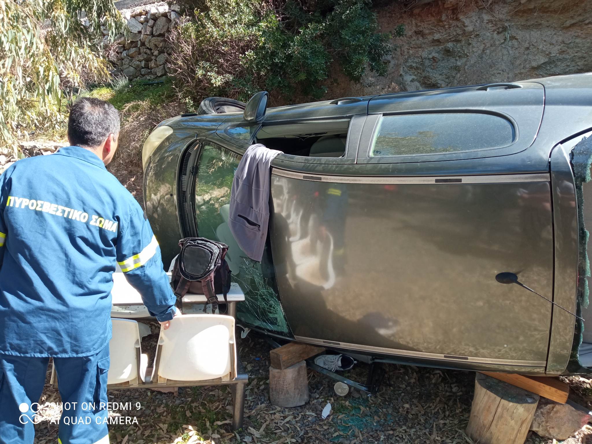 Ευτυχώς δεν υπήρξαν άτομα στην αυλή τη στιγμή του συμβάντος. Πρέπει να σημειωθεί πως τον άνδρα που ευτυχώς είχε τις αισθήσεις του, απεγκλώβισαν άμεσα πολίτες που βρέθηκαν στην περιοχή και άκουσαν φωνές. Το όχημα έπεσε από ύψος περίπου 4 μέτρων.