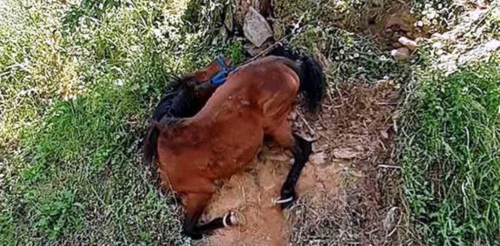 Ωστόσο, όπως εξηγεί σε σχετική ανάρτηση, αποδείχθηκε πως «το ζώο, του οποίου τα πόδια ήταν δεμένα μεταξύ τους και εκείνο δεμένο σε μια ελιά δίπλα σε μια πλαγιά, ψάχνοντας νερό και εξαντλημένο λύγισε και κρεμάστηκε στην πλαγιά».