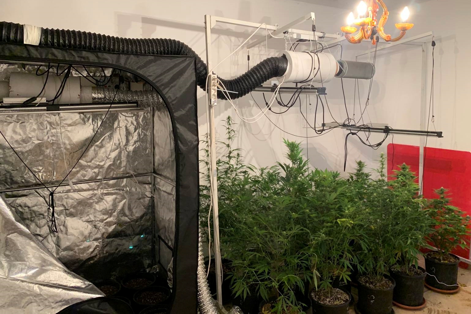 • 29 φυτά κάνναβης ύψους έως 1,57 μέτρα, ανεπτυγμένα μέσα σε γλάστρες υπό ελεγχόμενες συνθήκες φωτισμού, αερισμού και υγρασίας