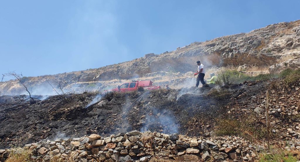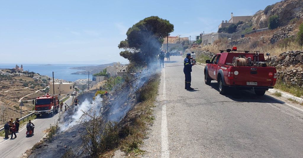 Σύμφωνα με τις πρώτες πληροφορίες η φωτιά έκαψε ξερά χόρτα και χαμηλή βλάστηση. Προανάκριση για τον προσδιορισμό των αιτιών που προκάλεσαν τη φωτιά, διενεργεί το αρμόδιο Τμήμα της Πυροσβεστικής Υπηρεσίας Ερμούπολης.